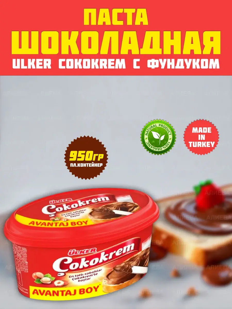 Шоколадно-фундуковая паста "Ulker" предлагает вам вкус лесных орехов и нежнейшего шоколада. Восхитительный вкус этой пасты достигается благодаря использованию исключительно натуральных ингредиентов, таких как отборный черноморский фундук и какао высшего качества. Шоколадно-фундуковая паста порадует как взрослых так и самых маленьких любителей сладкого, а также станет прекрасным десертом или частью вашего любимого кулинарного рецепта.
