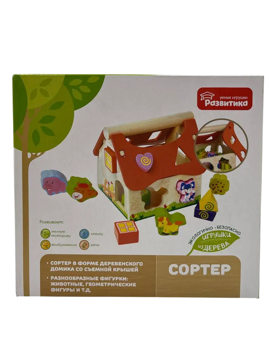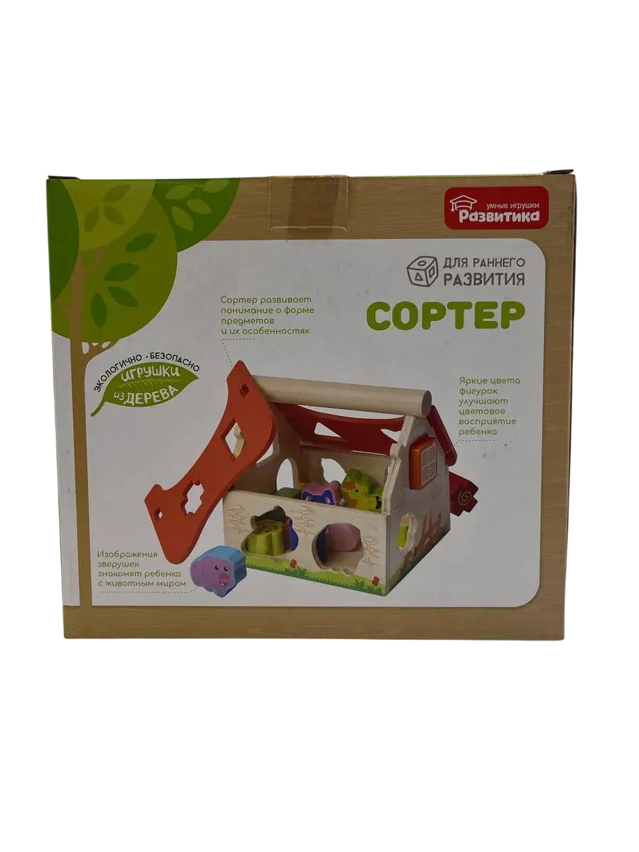 Все детали изготовлены из качественного дерева, тщательно отшлифованы и покрыты безопасными красками. Крупные фигурки удобно держать в маленьких ручках. Этот сортер станет отличным подарком для детей от 1 года и поможет в их гармоничном развитии через увлекательную игру.