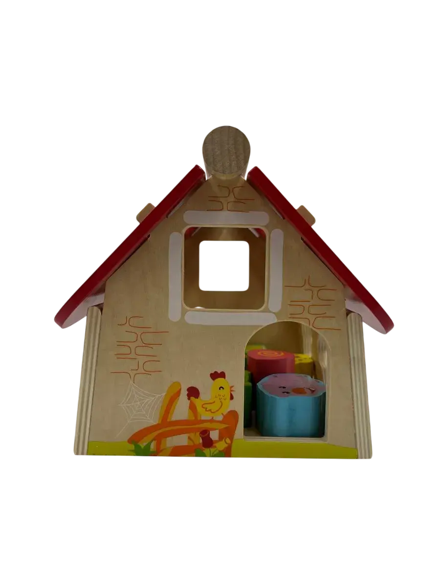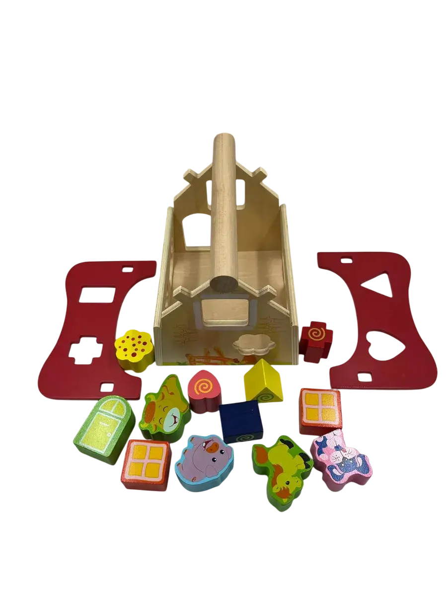 В наборе вы найдете различные фигурки: забавных животных и геометрические формы. Малышу предстоит подбирать подходящие отверстия для каждой фигурки, развивая понимание форм и их особенностей. Съемная крыша домика делает игру еще интереснее - ребенок может самостоятельно загружать и вынимать фигурки.