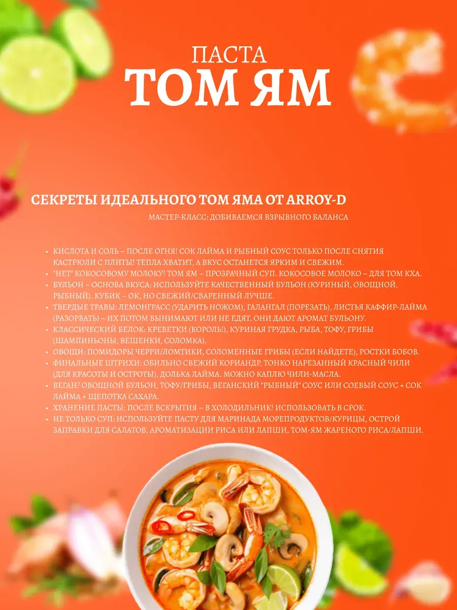 Кулинарное путешествие в сердце Таиланда начинается с узнаваемых ароматов, которые способны перенести вас на оживленные улицы Бангкока или к берегам теплого моря. Среди самых знаковых вкусов этой страны почетное место занимает том ям, суп с характерным ярким и бодрящим профилем. Создать этот гастрономический символ в домашних условиях позволяет паста том ям от Aroy-D, которая становится ключом к тайской кухне для каждого. Этот продукт представляет собой идеально сбалансированную основу, где традиционные рецептуры встречаются с современным форматом готовых приправ. Паста том ям обладает насыщенной энергетической и питательной ценностью, что делает ее не только вкусным, но и значимым компонентом вашего рациона.