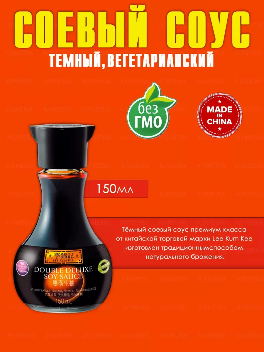 Тёмный соевый соус премиум-класса от китайской торговой марки Lee Kum Kee изготовлен традиционным способом натурального брожения. Он имеет глубокий красно-коричневый цвет и достаточно густую консистенцию и подходит для приготовления любых азиатских блюд.
