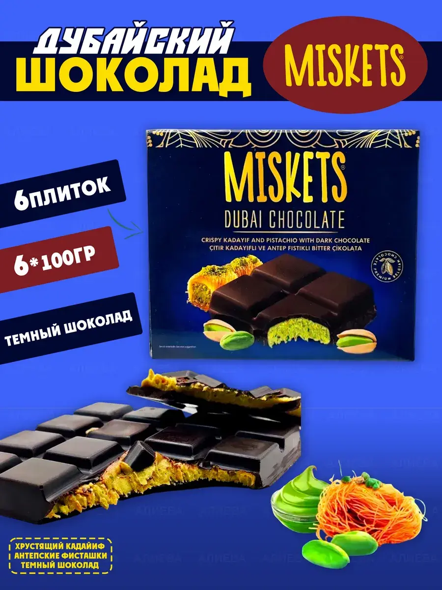 Дубайский темный шоколад "Miskets", 100гр - 6шт