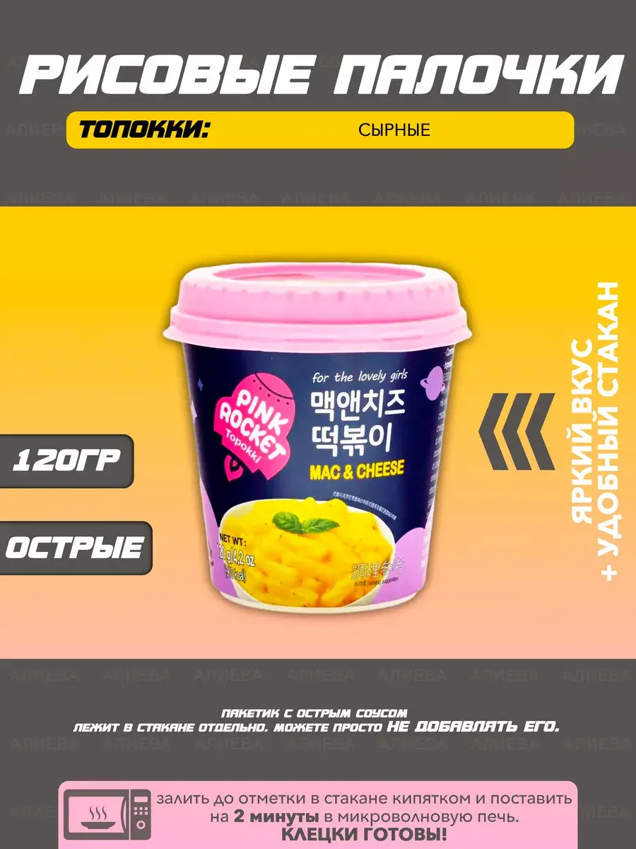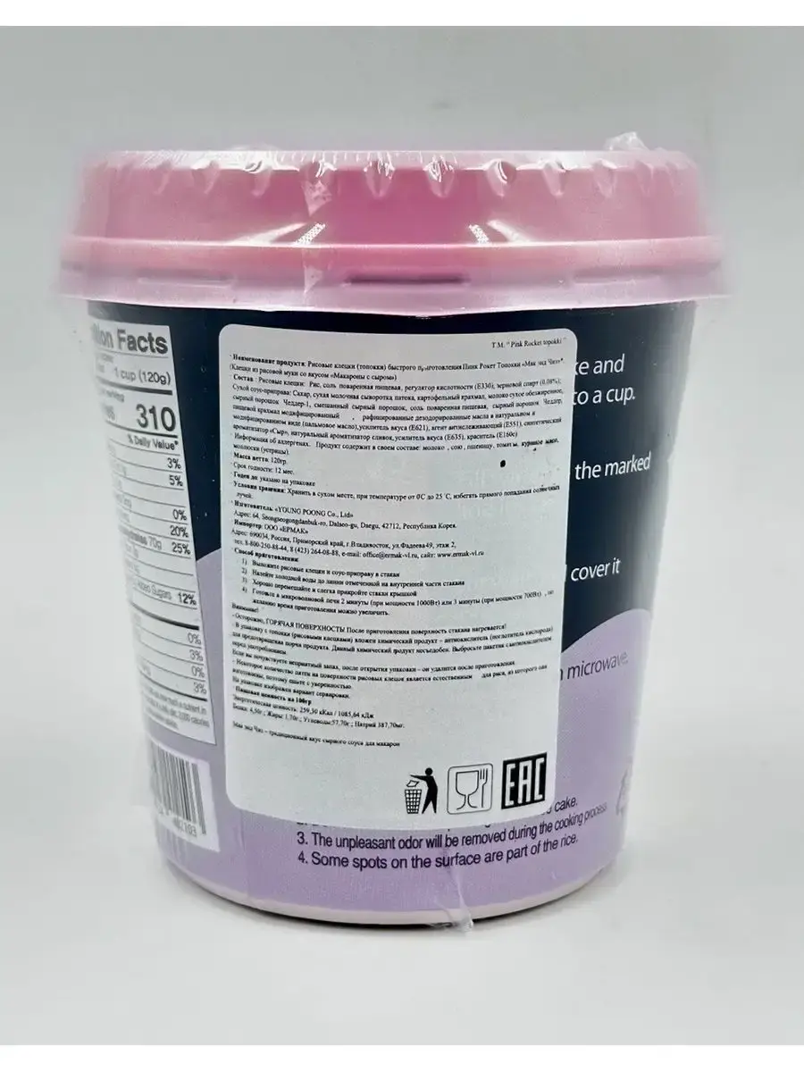 Токпокки - рисовые брусочки (колбаски, палочки, лепешки), приготовленные в специальном соусе. Токпокки являются еще одним популярным блюдом традиционной корейской кухни, помимо лапши рамен. Топокки Pink Rocket со вкусом сыра Mac&Cheese - это прекрасная возможность без лишних хлопот приготовить оригинальное корейское блюдо за считанные минуты. Пикантный сливочный вкус соуса прекрасно сочетается с рисовыми палочками , отлично насыщает и наполняет энергией.