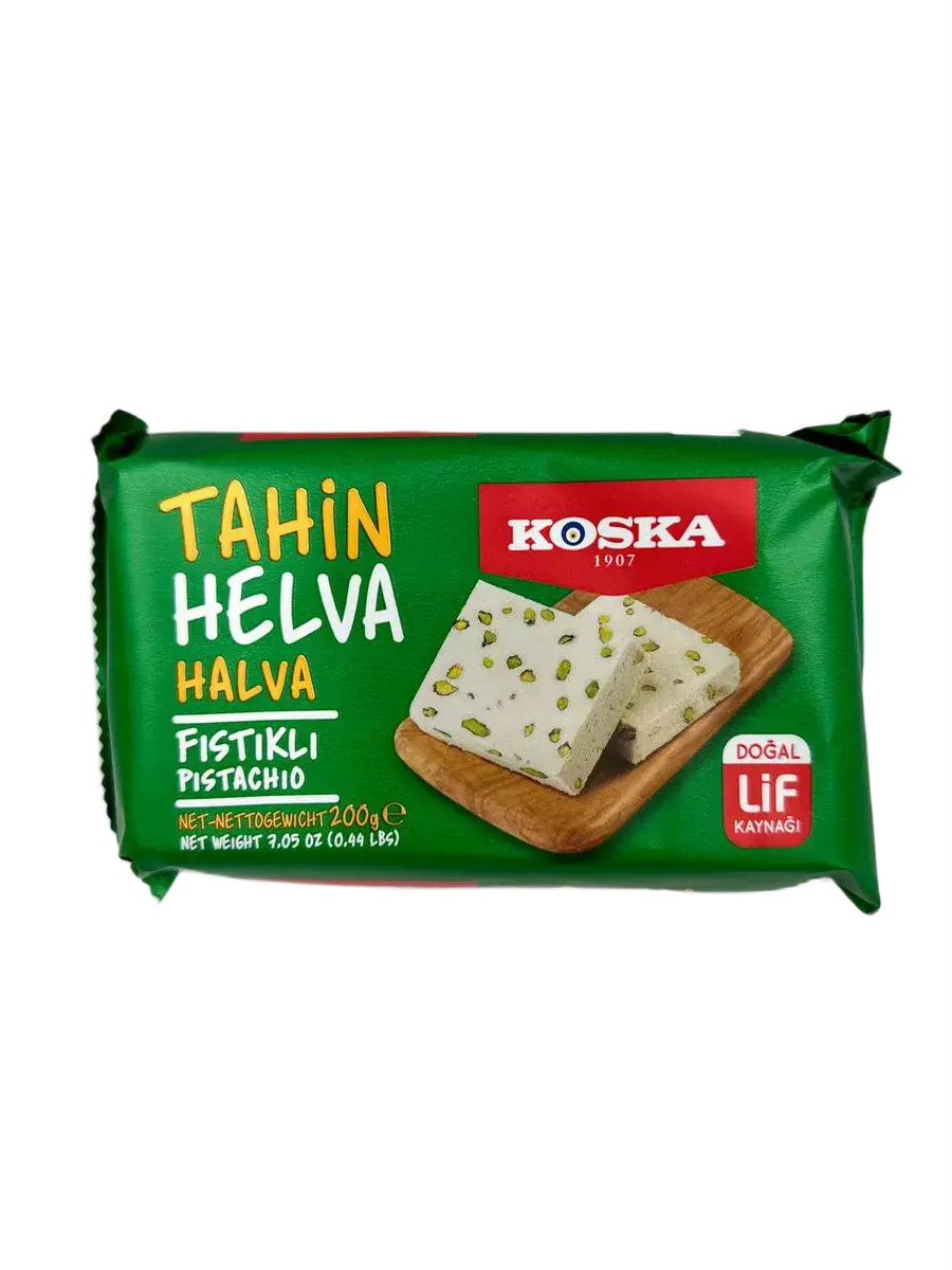 Кунжутная халва -это классическое восточное лакомство, которое отличается не только приятным вкусом, но и богатым составом и полезными микроэлементами, что обусловлено высоким содержанием кунжутной пасты. Натуральный состав, традиционная рецептура и трепетное отношение к технологиям производства -вот ключевые принципы, которым придерживаются производители кунжутной халвы Koska. Кунжутная халва Koska делается из кунжута высочайшего качества и по особой технологии, которой производитель придерживается уже многие годы. Добавление питательных фисташек повышает энергетическую ценность этого лакомства, а также обогащает организм полезными микроэлементами и витаминами. Благодаря такому натуральному составу кунжутная халва с фисташками Koska надолго насыщает и дарит заряд энергии. Упаковка флоу-пак позволяет надолго сохранить вкусовые свойства продукта, не позволяя солнечным лучам и влажности повлиять на качество кунжутной халвы.