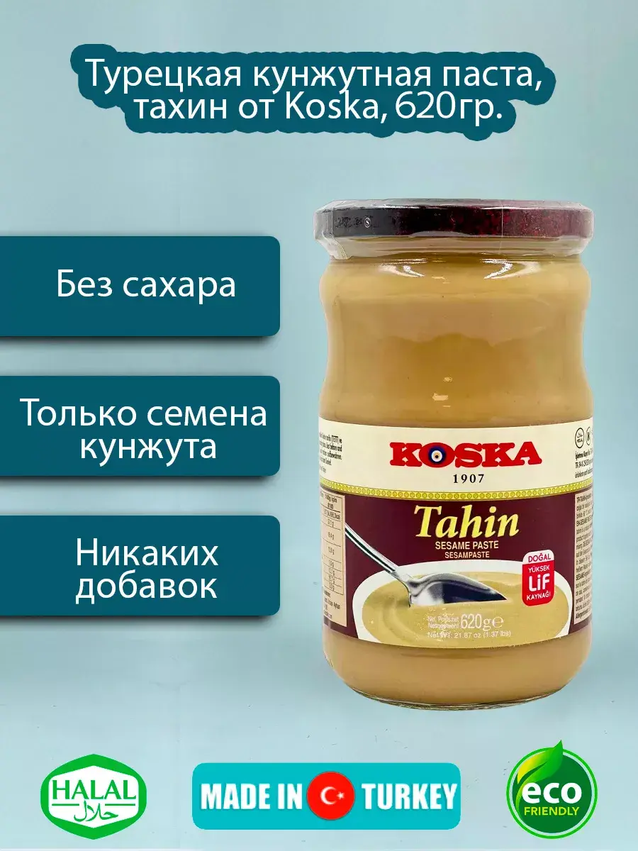 Откройте дверь в восточный рай вместе с кунжутной пастой от турецкого бренда Koska – настоящим воплощением вкуса и качества. На прилавках нашей упаковки вы найдете не только банку с потрясающе вкусной тахиной, но и удивительное путешествие в мир восточных вкусов и традиций.