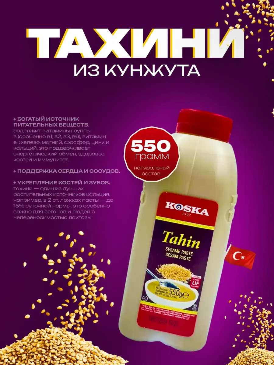 100% натуральная паста, получаемая путем перетирания сырых (не обжаренных) семян. Его можно употреблять как самостоятельно, так и в сочетании с медом, хлебцами, бутербродами и кусочками овощей.