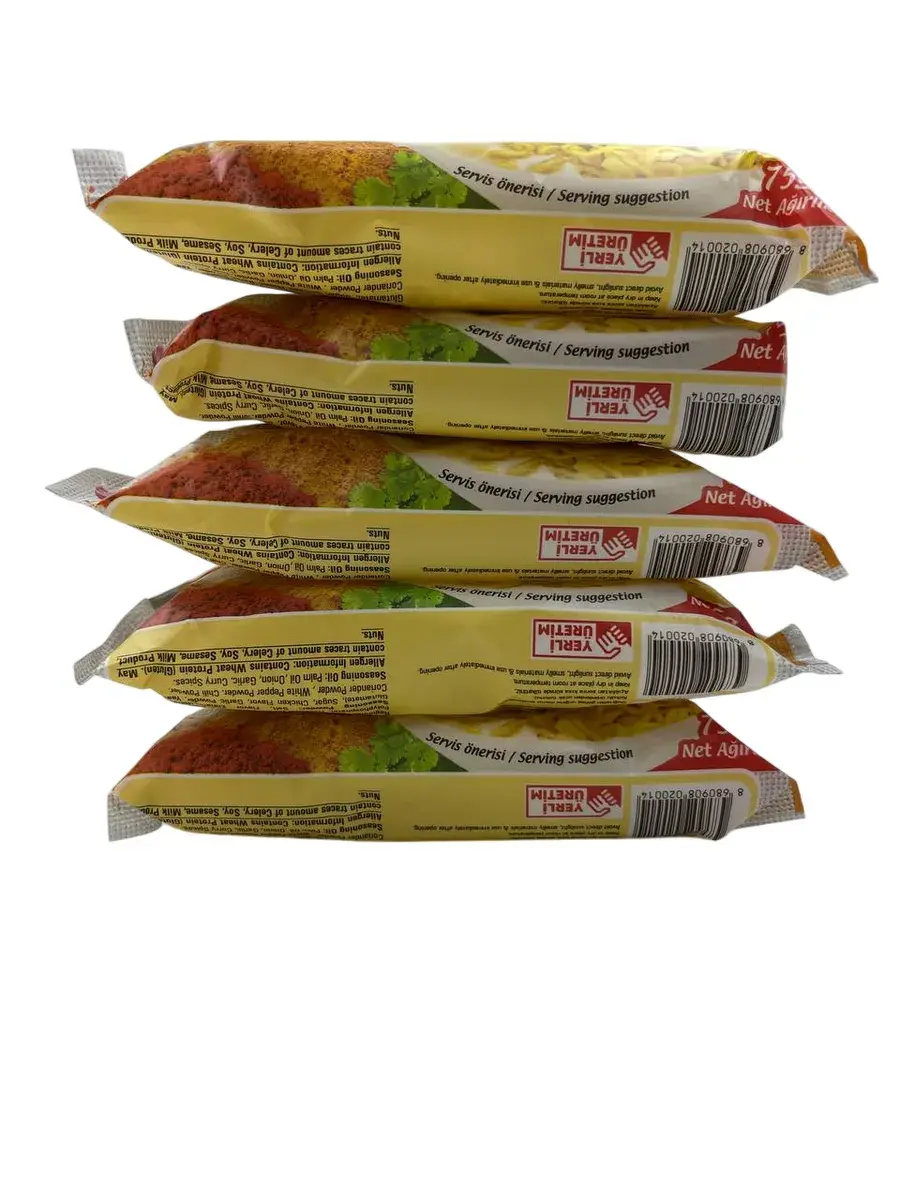 В упаковке вы найдете 5 порций по 75 г – идеальный вариант для быстрого, вкусного и сытного перекуса. Приготовление займет всего несколько минут: отварите лапшу в 400 мл кипящей воды в течение 3 минут, добавьте ароматные приправы и тщательно перемешайте. Подавайте лапшу без супа, чтобы насладиться ее насыщенным вкусом и текстурой.