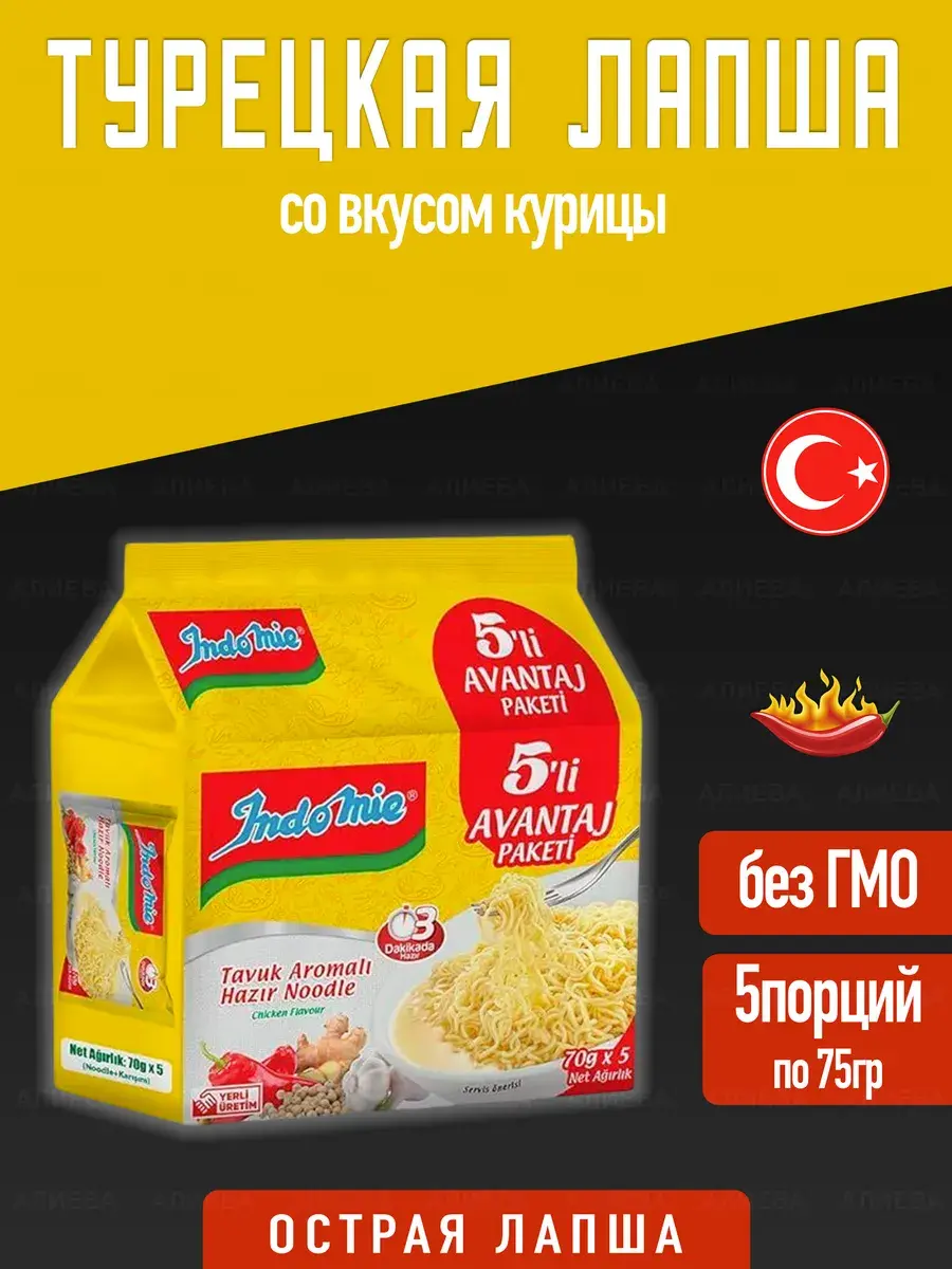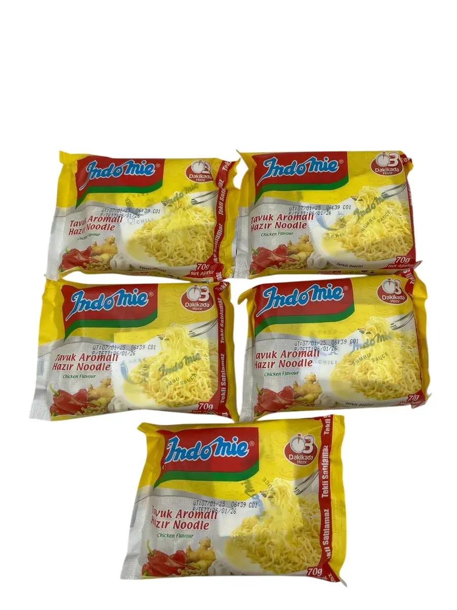 Лапша быстрого приготовления Indomie со вкусом курицы – это вкусный, сытный и удобный выбор для вашего повседневного меню. В упаковке вы найдете 5 порций лапши по 75 грамм, что делает ее идеальным вариантом для быстрого перекуса или полноценного приема пищи.