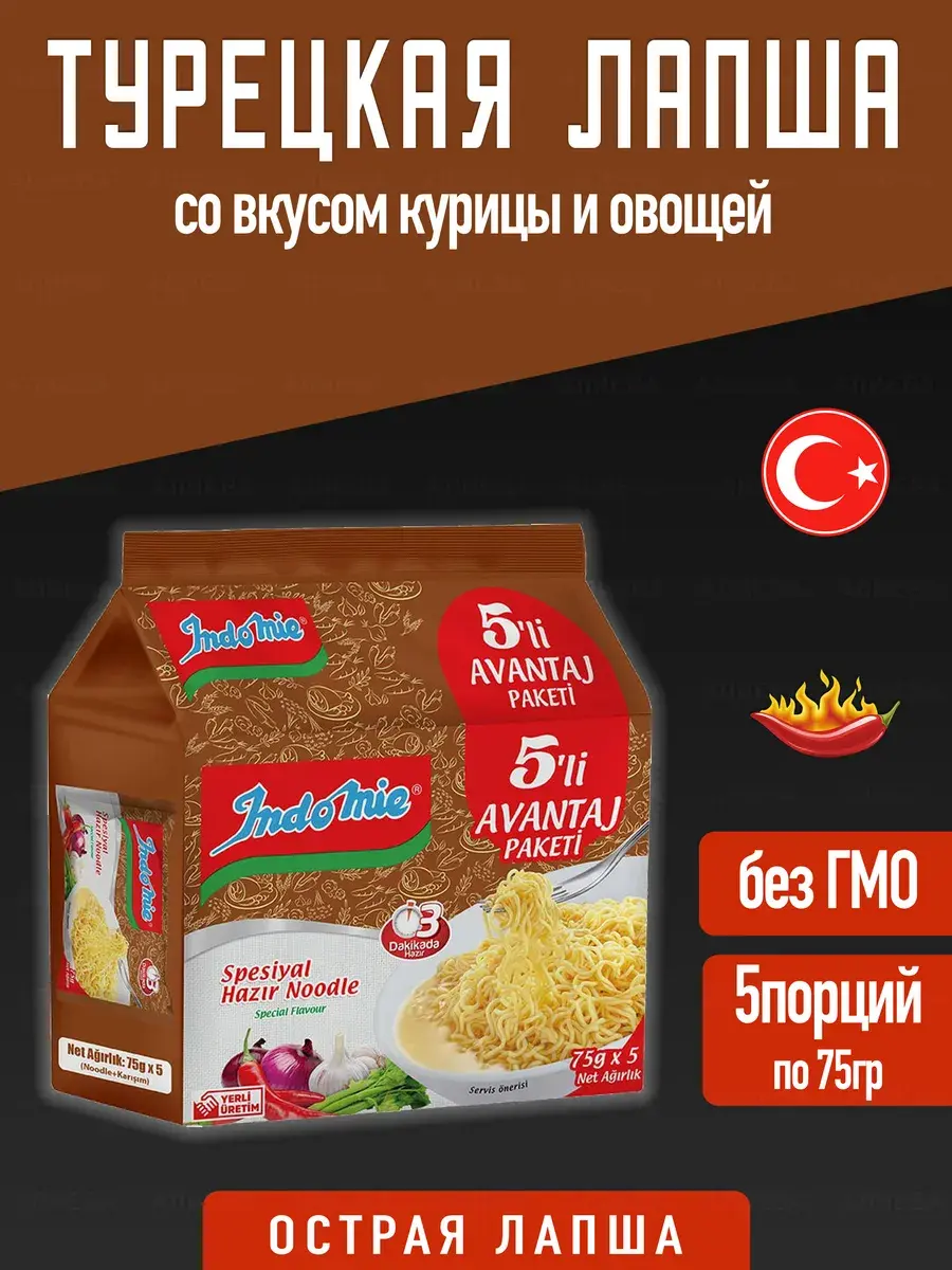 Лапша быстрого приготовления Indomie со вкусом курицы и овощей – это вкусный, сытный и удобный выбор для вашего повседневного меню. В упаковке вы найдете 5 порций лапши по 75 грамм, что делает ее идеальным вариантом для быстрого перекуса или полноценного приема пищи.