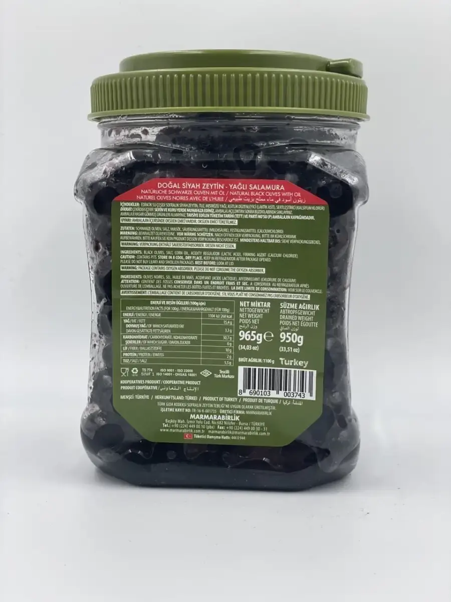 Компания MARMARABIRLIK основана в 1954 году. Она входит в Топ-5 мировых производителей столовых оливок и является самым крупным производителем столовых оливок и оливкового масла в Турции. При производстве оливок используются только натуральные ингредиенты: кислоты (молочная, лимонная, аскорбиновая) и соли (хлорид кальция, сорбат калия). Все добавки разрешены к использованию во всех странах, не имеют суточных норм потребления.Оливки, которые выпускает турецкая компания MARMARABIRLIK, обладают восхитительными вкусовыми качествами и массой полезных свойств. В отличие от большинства продукции других торговых марок, эти оливки не подвергаются химической обработке, созревают непосредственно на ветках и вялятся естественным путем. Их выдерживают в морской соли с целью устранения характерной горечи. Правда, при этом пикантная горчинка все равно остается, ее дает самое полезное в оливках вещество под названием олеуропеин.