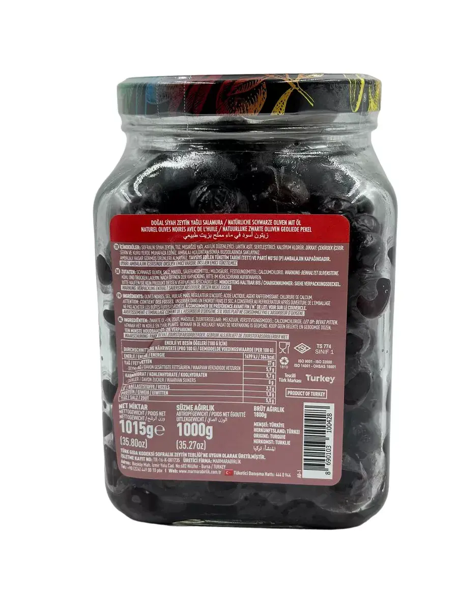 Мармарабирлик придает особое внимание качеству своей продукции. Наши оливки не подвергаются химической обработке, созревают на ветках и вялятся естественным образом. Выдержка в морской соли устраняет горечь, но сохраняет пикантную нотку, благодаря олеуропеину - полезному веществу в оливках. Это кошерный продукт, который способствует хорошему пищеварению, замедляет процесс старения, защищает от развития рака и патологий сердечно-сосудистой системы, а также помогает снизить артериальное давление.