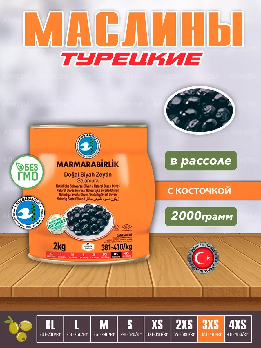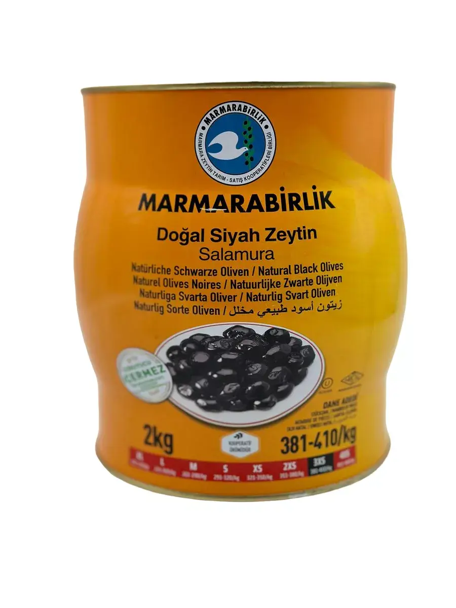 Откройте для себя волшебство вкуса с черными оливками 3ХS в рассоле, представленными Marmarabirlik в упаковке на 2 килограмма в железной банке. Оливки этой турецкой компании номер один отличаются от всех остальных, и вот почему.