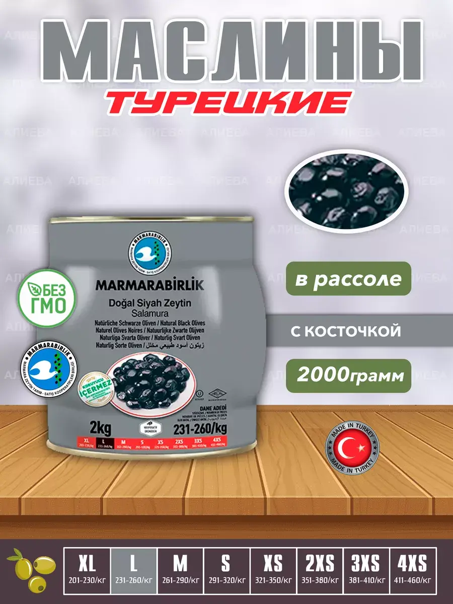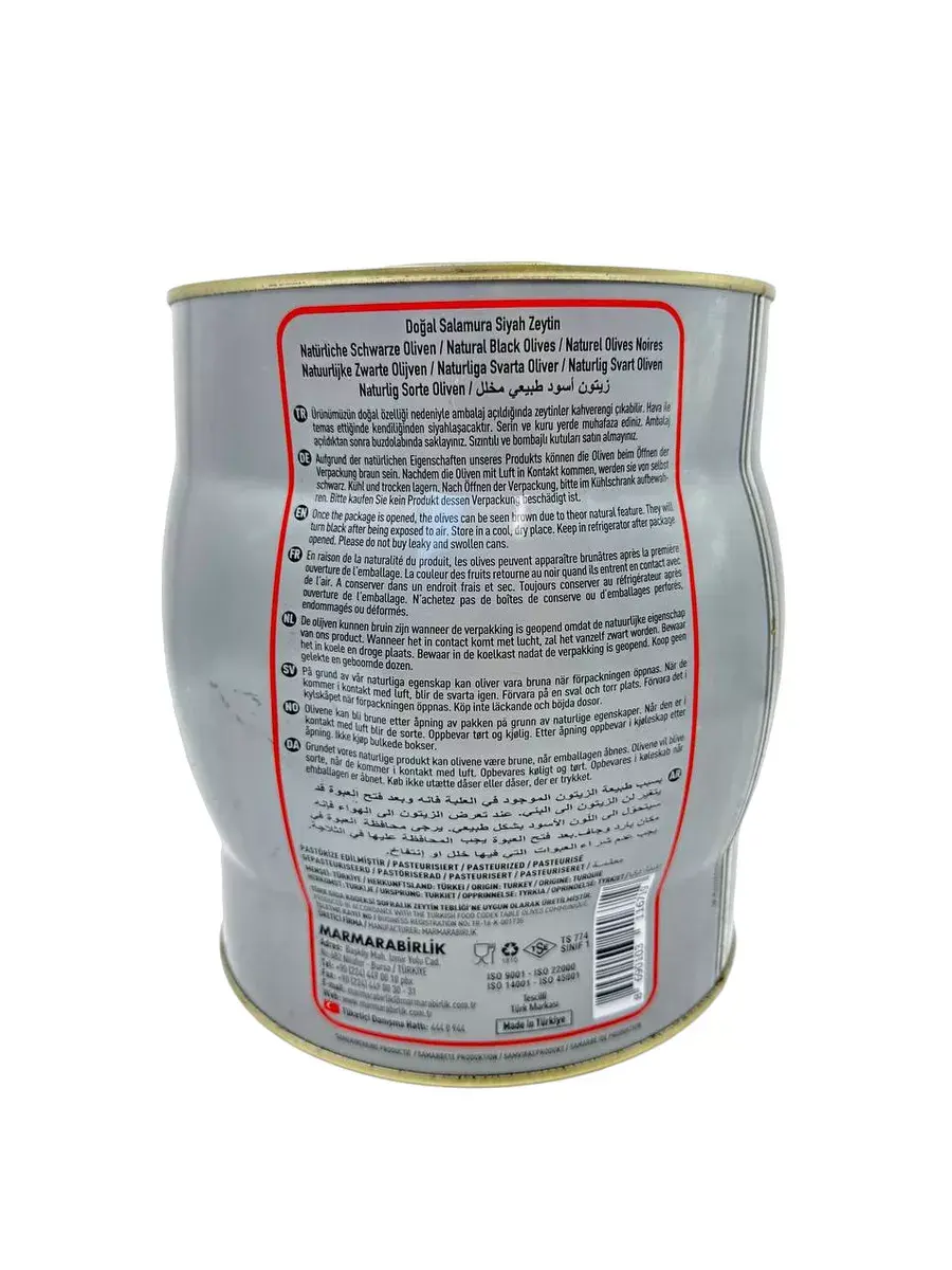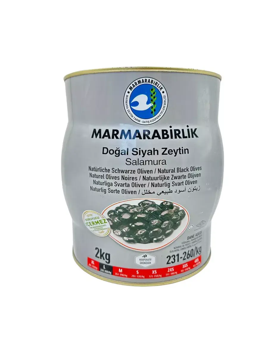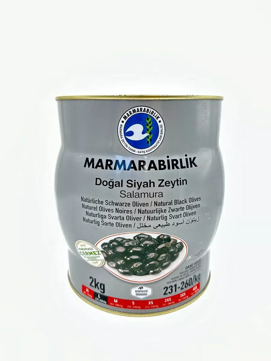 Откройте для себя волшебство вкуса с черными оливками L в рассоле, представленными Marmarabirlik в упаковке на 2 килограмма в железной банке. Оливки этой турецкой компании номер один отличаются от всех остальных, и вот почему.