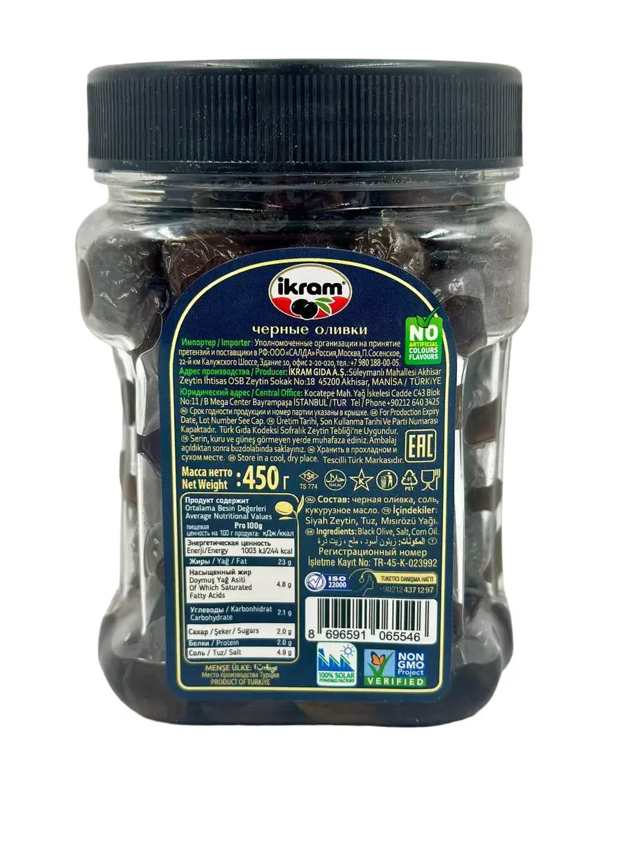 Черные Оливки Ikram вяленые в масле экстра 450гр