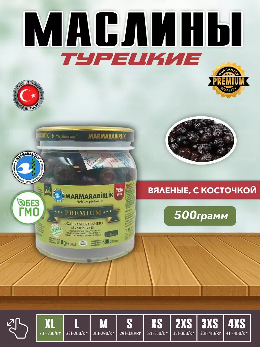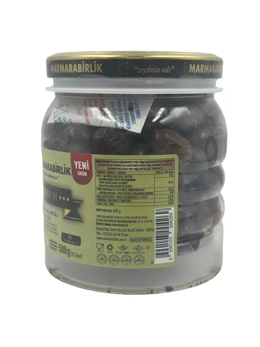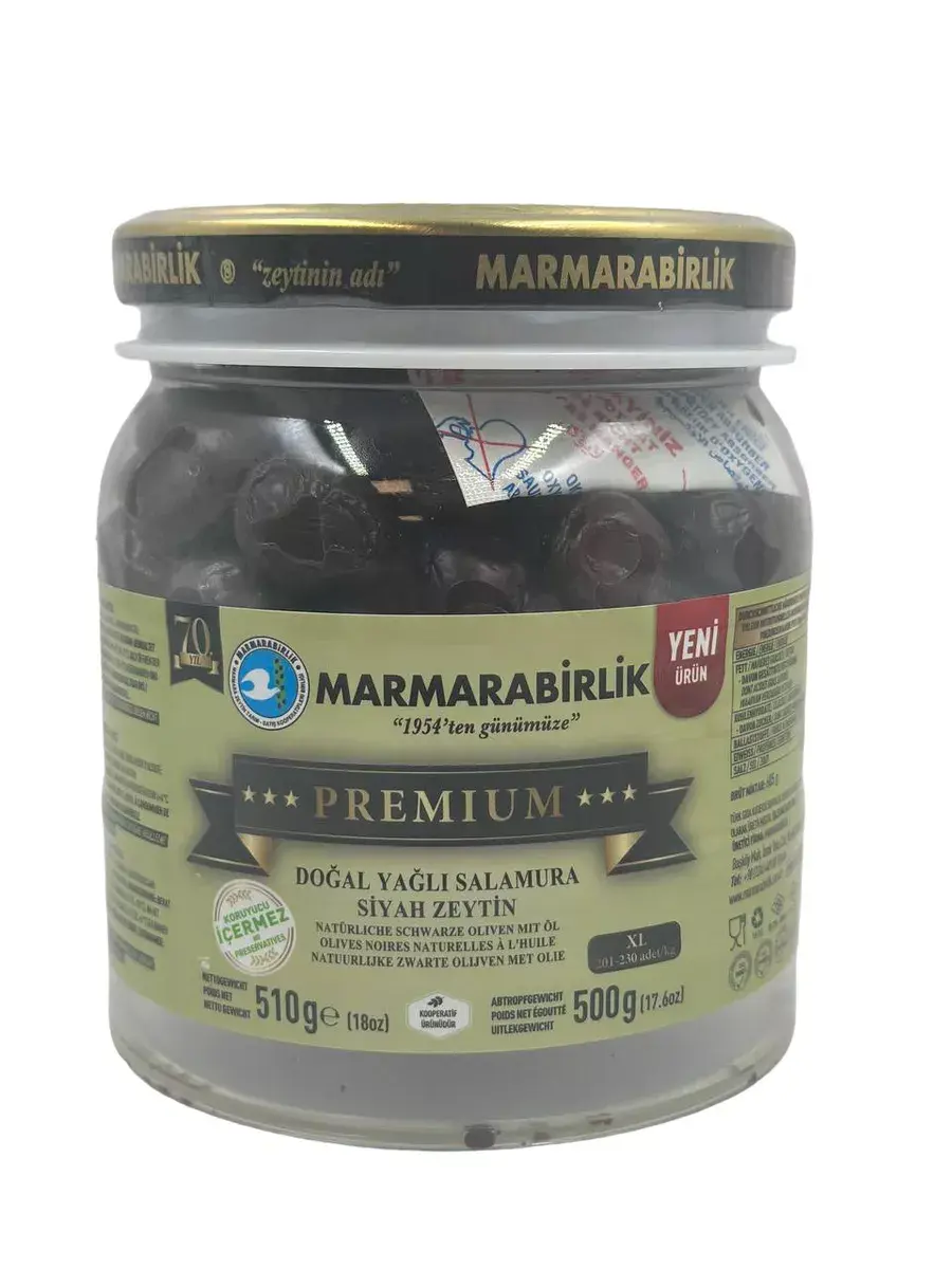Оливки турецкой компании №1 Мармарабирлик отличаются от подавляющего большинства оливок. Прежде всего, эти оливки созрели на ветке и прошли естественную, а не химическую обработку. Она занимает от 6 до 9 месяцев, в отличие от 10-14 дней химических процессов. Оливки лежат в морской соли и постепенно избавляются от своей горечи. Однако горечь намеренно не убирается до конца: дело в том, что её придаёт олеуропеин - самое полезное вещество в оливках. Поэтому оливки Мармарабирлик не только имеют фирменные лёгкие горечь и солёность, но и полезны для здоровья. Они благотворно влияют на пищеварение, препятствуют старению тканей, возникновению гипертонии и рака, заболеваний сердца, сосудов. Оливки со специями (паприка, тмин, тимьян, лавровый лист) имеют свой особенный вкус, оттененный восточным ароматом. Люди, впервые попробовавшие Мармарабирлик, говорят - если это оливки, то что мы ели до этого? Попробуйте и Вы, чтобы убедиться, что вкус и польза совмещаются в одном продукте!