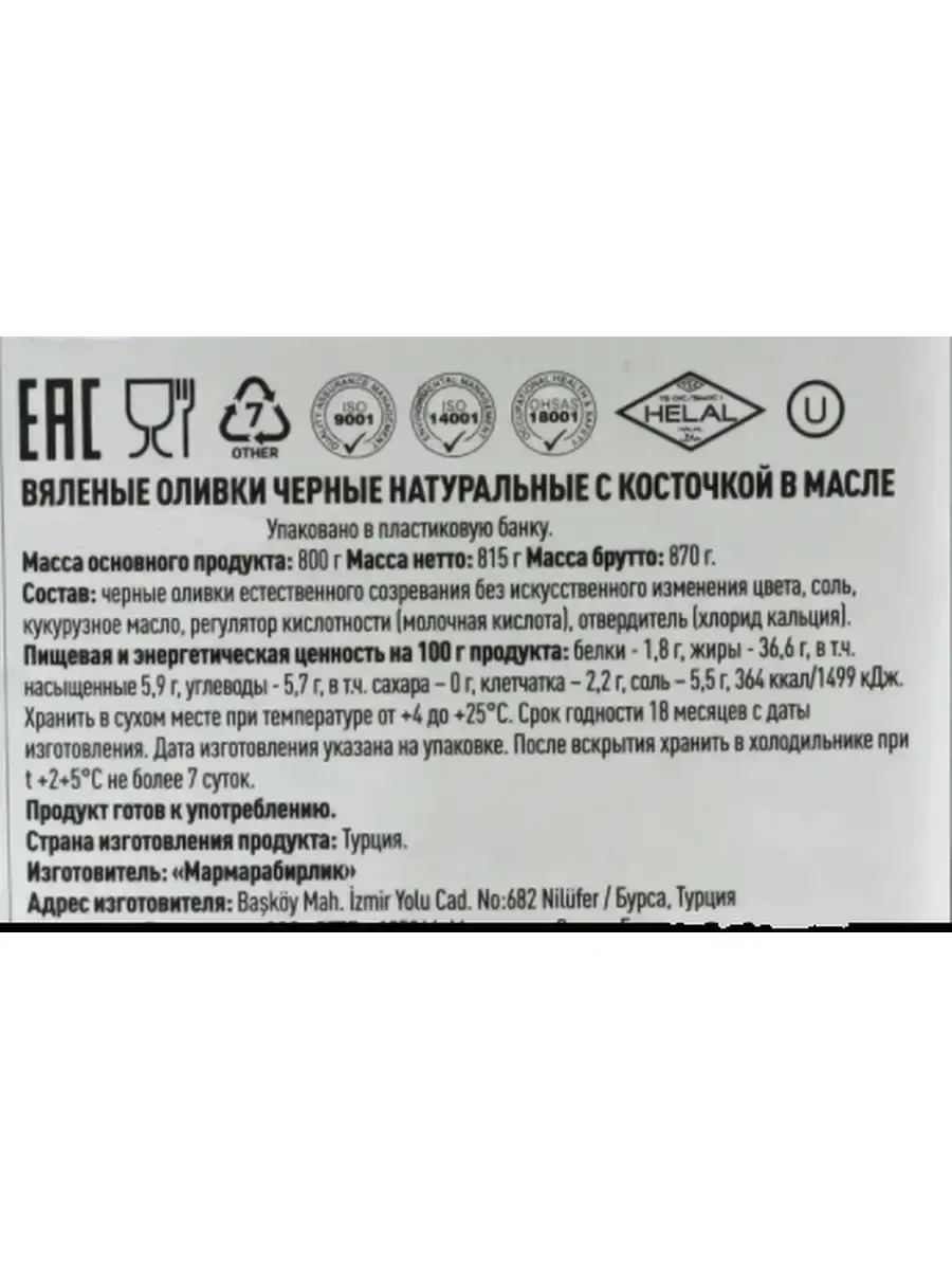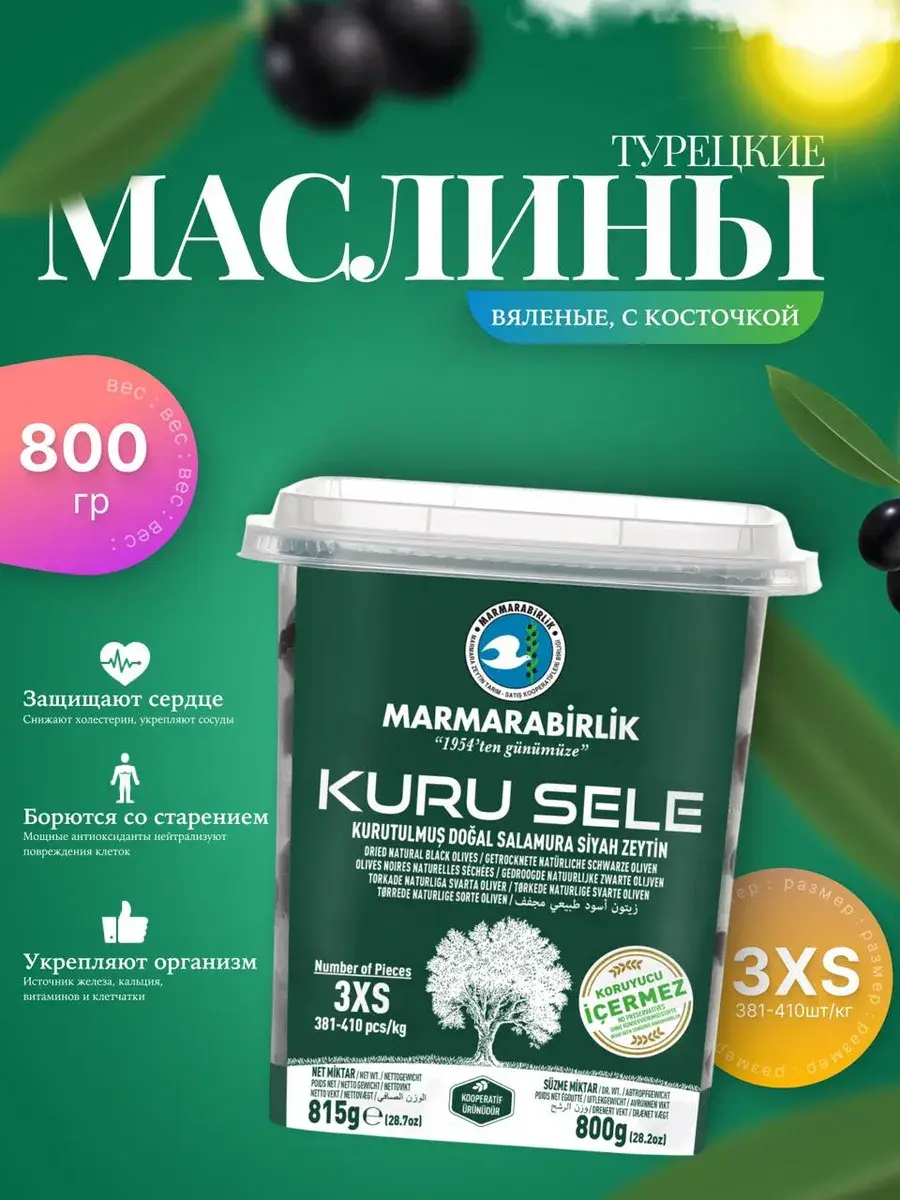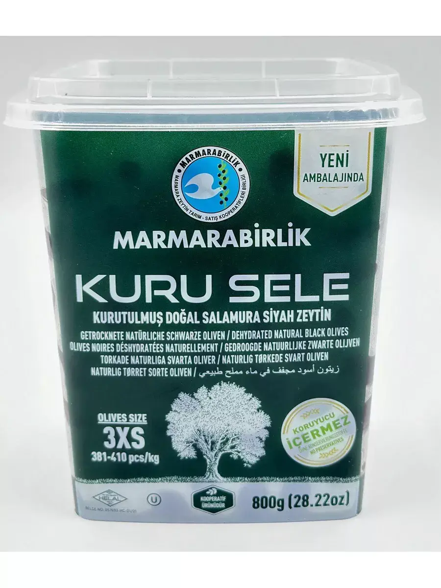 Маслины Marmarabirlik Kuru Sele изготавливается из оливок высшего сорта.Их можно подать просто на тарелке, либо в специальном соусе приготовленным своими руками, чтобы можно было макать хлебом. В небольшую глубокую миску кладём одну столовую ложку острой перечной пасты. Выжимаем немного лимонного сока к пасте, туда же добавляем оливковое масло. Перемешиваем перцовую пасту с маслом и лимонным соком до однородной консистенции, должен получится очень красивый цвет у вашего соуса. Добавляем по вкусу сухой мяты и орегано, выкладываем в приготовленный вами соус оливки, и хорошо перемешиваем. Попробуйте вам понравится. Marmarabirlik является одним из самых крупных производителей маслин в Турции и мире. Компания создана в 1954 г. с целью увеличение производство маслин и оливковое масло в своем регионе Marmara.