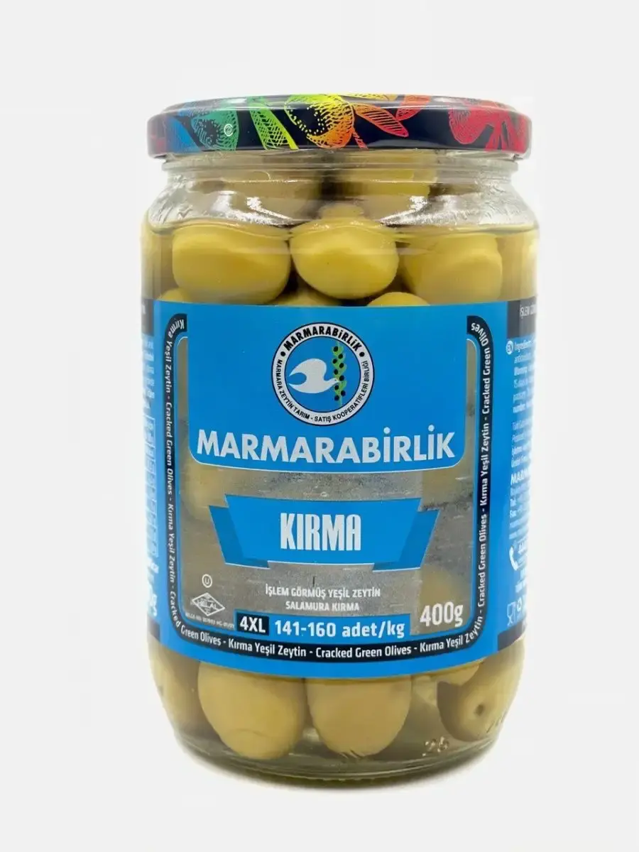 Оливки KIRMA - являются самым здоровым и натуральным источником растительного масла в мире. Сбор урожая оливок производится в Турции с октября по январь. Оливки из кооператива подвергаются естественной ферментации в рассоле, с концентрацией 10% в течение 9-10 месяцев на комплексных предприятиях по продаже оливкового сельского хозяйства MARMARABIRLIK. MARMARABIRLIK - это союз сельскохозяйственных торговых кооперативов, созданный в 1954 году с целью выращивания столовых оливок лучшего качества в мире и реализации их в лучших условиях.