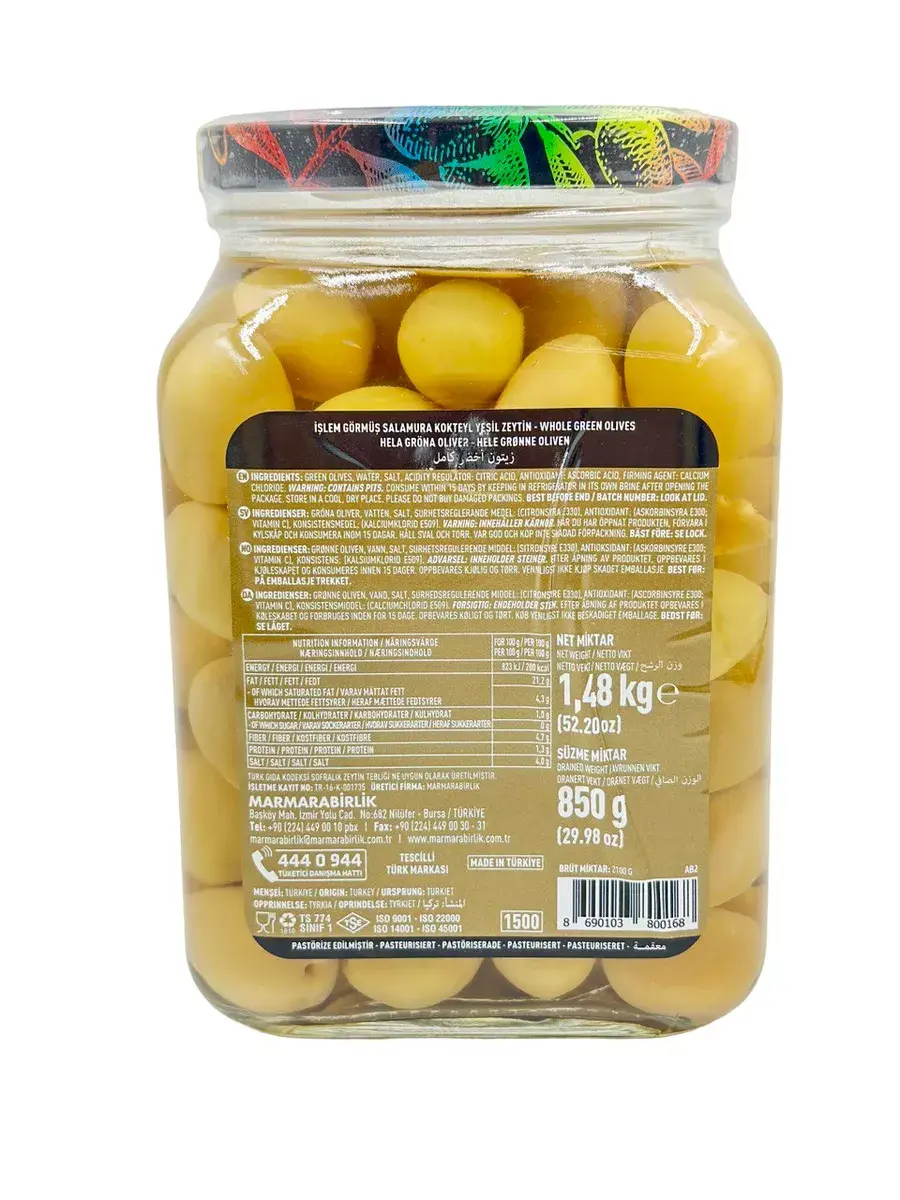 Оливки Kokteyl - являются самым здоровым и натуральным источником растительного масла в мире. Сбор урожая оливок производится в Турции с октября по январь. Оливки из кооператива подвергаются естественной ферментации в рассоле, с концентрацией 10% в течение 9-10 месяцев на комплексных предприятиях по продаже оливкового сельского хозяйства MARMARABIRLIK. MARMARABIRLIK - это союз сельскохозяйственных торговых кооперативов, созданный в 1954 году с целью выращивания столовых оливок лучшего качества в мире и реализации их в лучших условиях.