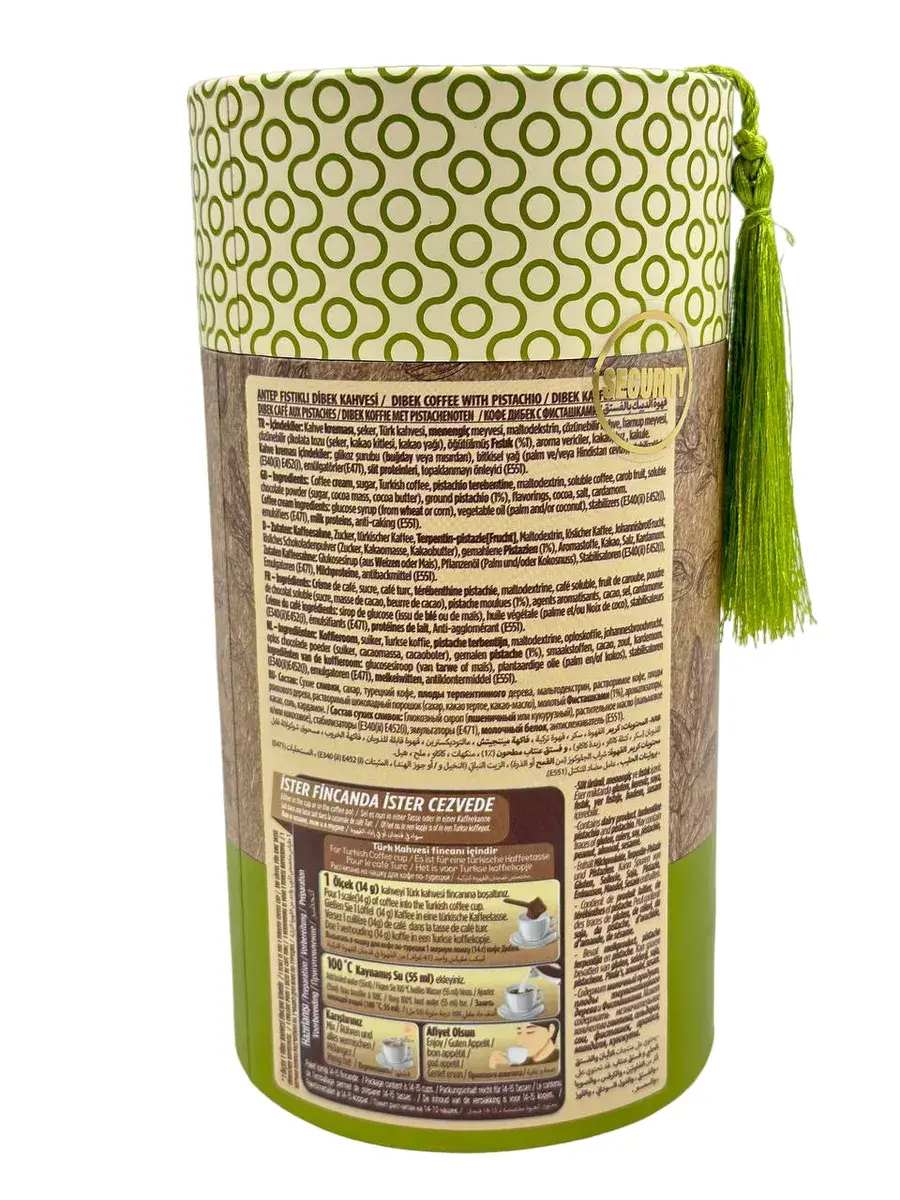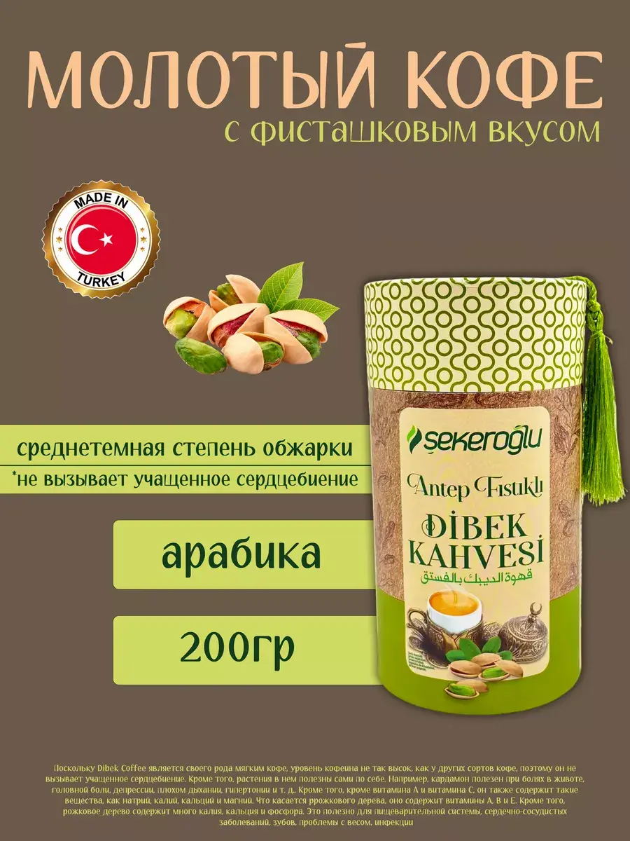Вкусный турецкий кофе Дибек (что означает смесь нескольких продуктов),состоит из самых популярных в Турции ингредиентов! Прочитав состав напитка Вы точно захотите его попробовать! Турецкий кофе Dibek более мягкий, потому, что уровень кофеина в нем ниже. В составе упаковки есть мерная ложечка (объем 14 гр), предназначенная для приготовления 1 стакана напитка.