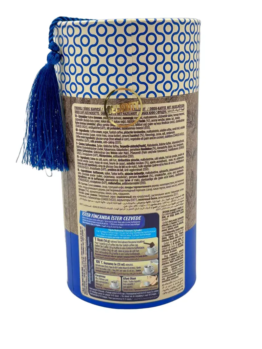 Вкусный турецкий кофе Дибек (что означает смесь нескольких продуктов),состоит из самых популярных в Турции ингредиентов! Прочитав состав напитка Вы точно захотите его попробовать! Турецкий кофе Dibek более мягкий, потому, что уровень кофеина в нем ниже. В составе упаковки есть мерная ложечка (объем 14 гр), предназначенная для приготовления 1 стакана напитка.