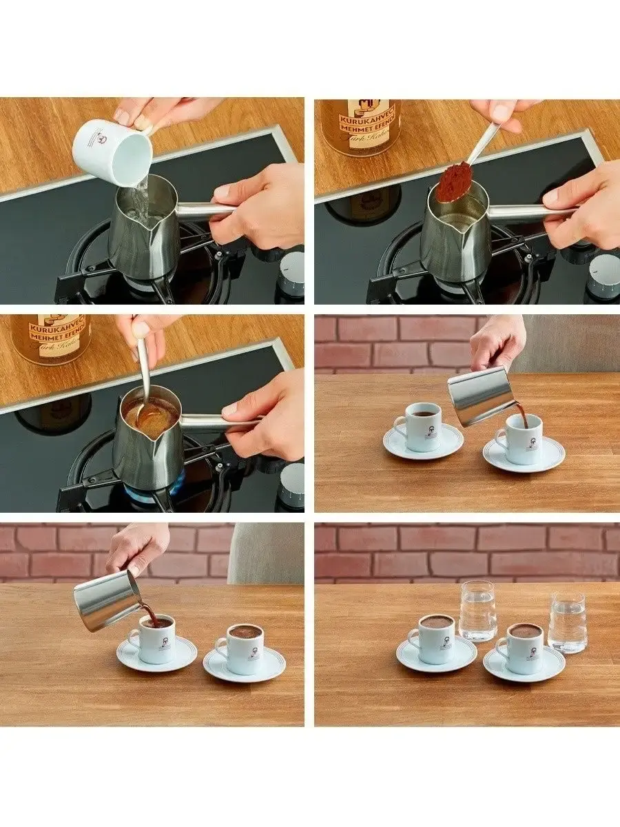 Турецкий кофе произведён из высококачественных кофейных зёрен сорта Арабика, который родом из Центральной Америки, Бразилии и Эфиопии. Кофейные зёрна тщательно сортируются, обжариваются, запекаются и перемалываются в тончайший порошок. Кофе подаётся в маленьких чашечках. После приготовления кофе должен некоторое время постоять, чтобы кофейная гуща осела на дно. Помол очень мелкий, ультратонкий, практически в пыль. Лучше всего готовить его в турке, сразу добавляя сахар, и подавать со стаканом воды. Особенности: 1. Турецкий кофе Mehmet Efendi обладает вязкой, плотной, чуть сиропной структурой.2. Помол обычно очень мелкий, получается высокая густая пенка.3. Аромат сильный, насыщенный, многогранный.4. Содержит меньше кофеина по сравнению с другими видами напитков. Обжарка кофе Mehmet Efendi очень темная, во вкусе почти не чувствуется кислинка или сладость, а вот горечь, дымные и "обугленные" ноты и горелая карамель явно ощутимы.