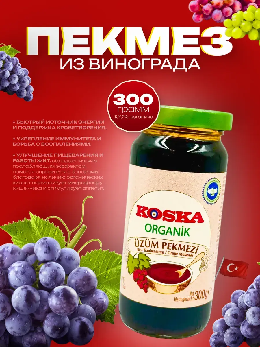 Пекмез из плодов винограда – это полезный продукт, который заслужил любовь у приверженцев здорового образа жизни во всем мире. Он представляет собой загущенный сироп из винограда, который готовится по особой технологии и при низких температурах, благодаря чему все полезные свойства остаются в готовом пекмезе.