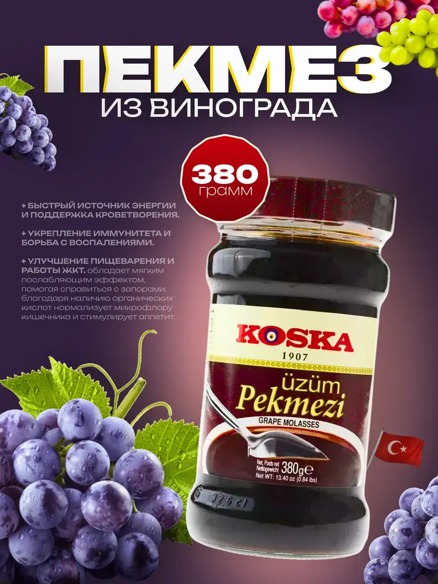 Пекмез из плодов винограда – это полезный продукт, который заслужил любовь у приверженцев здорового образа жизни во всем мире. Он представляет собой загущенный сироп из винограда, который готовится по особой технологии и при низких температурах, благодаря чему все полезные свойства остаются в готовом пекмезе.