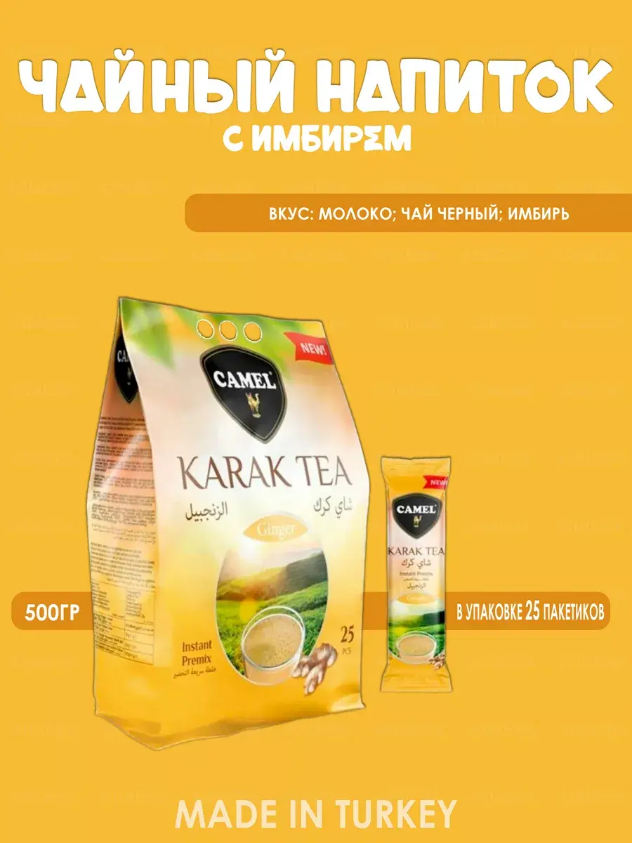 Хотите насладиться бодрящим и ароматным чаем в любое время дня? Тогда обязательно попробуйте растворимый чай 3 в 1 с имбирем от турецкого производителя Camel.