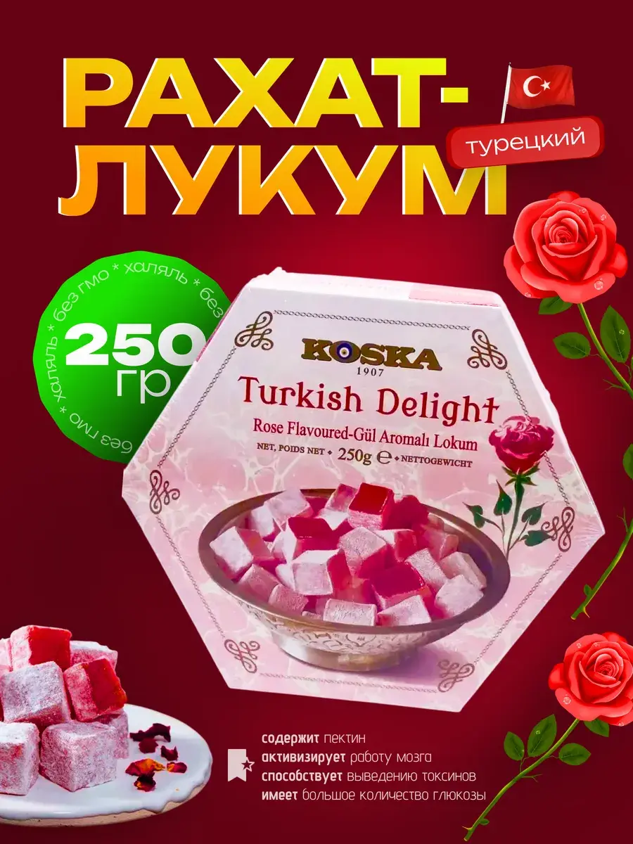В данной карточке для Вашего удобства представлены несколько видов натурального турецкого лукума.Сочетание нежного, тающего во рту турецкого рахат-лукума с разнообразными фруктовыми соками или орешками (фундук или фисташки) понравится всем любителям восточных десертов и сладостей.Восточные сладости от крупнейшего и известнейшего производителя Турции марки Koska порадуют Вас своим натуральным составом, приверженностью традициям и ингредиентами высочайшего качества.В их составе нет искусственных добавок и консервантов.