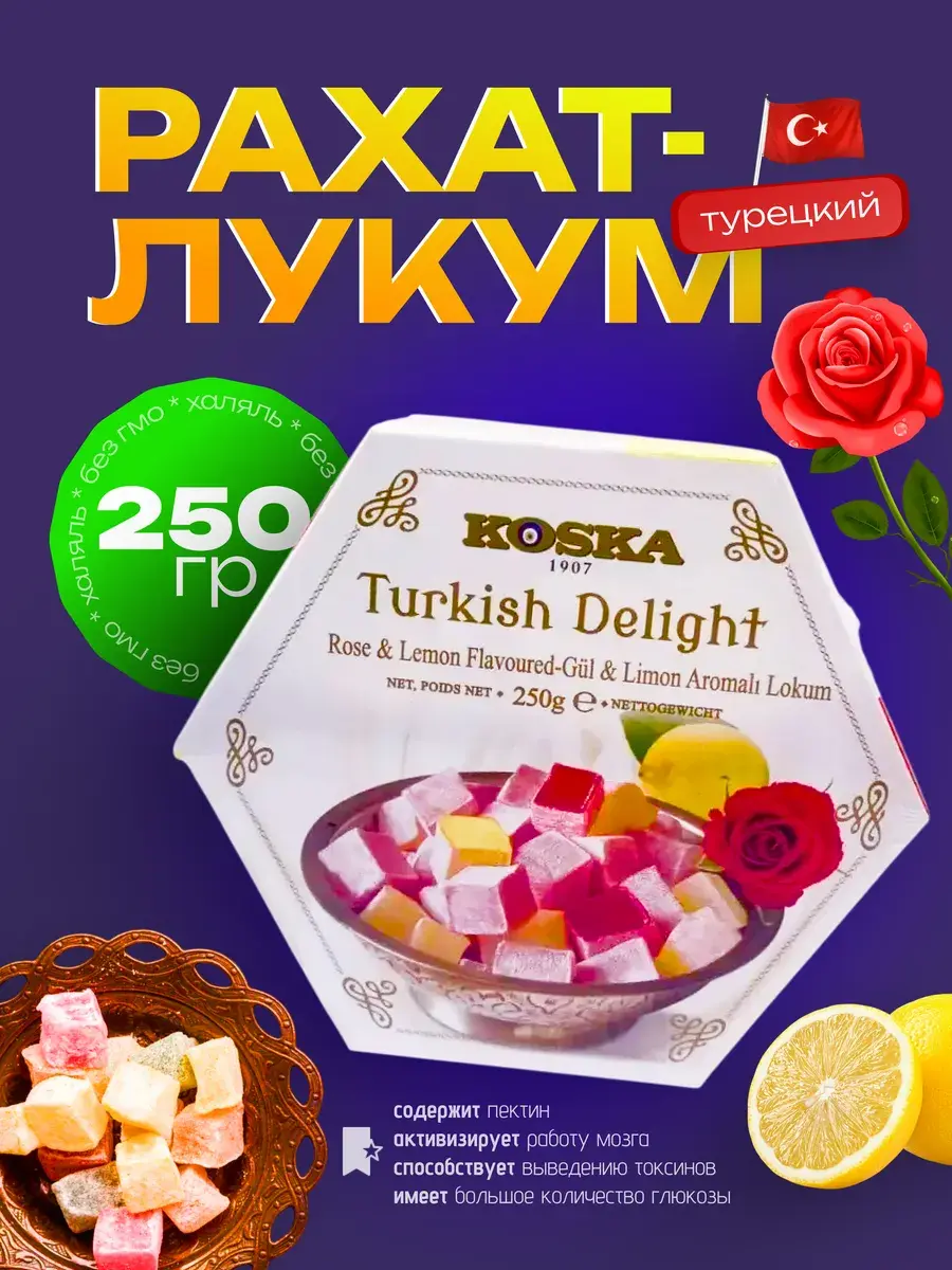 В данной карточке для Вашего удобства представлены несколько видов натурального турецкого лукума.Сочетание нежного, тающего во рту турецкого рахат-лукума с разнообразными фруктовыми соками или орешками (фундук или фисташки) понравится всем любителям восточных десертов и сладостей.Восточные сладости от крупнейшего и известнейшего производителя Турции марки Koska порадуют Вас своим натуральным составом, приверженностью традициям и ингредиентами высочайшего качества.В их составе нет искусственных добавок и консервантов.