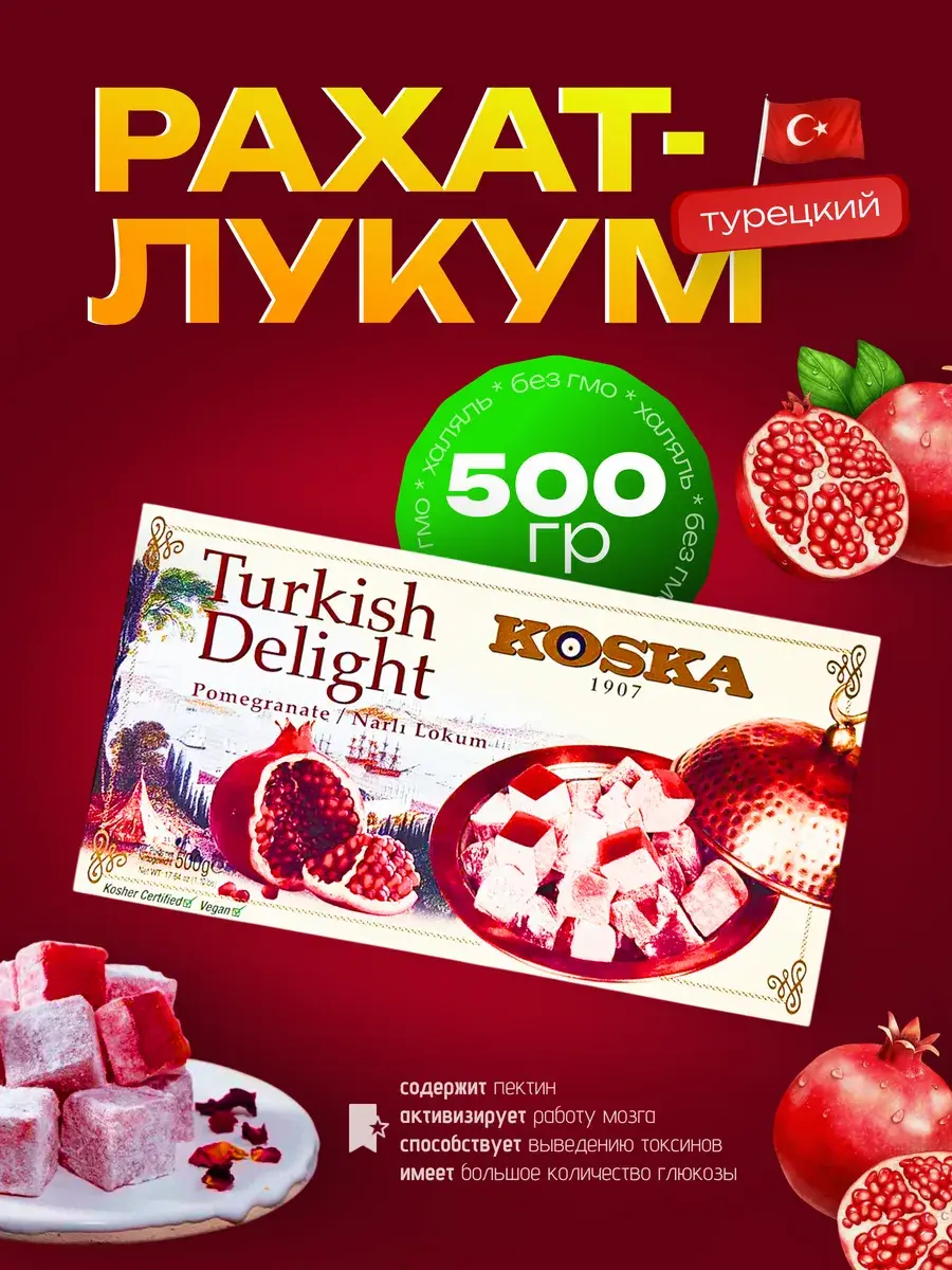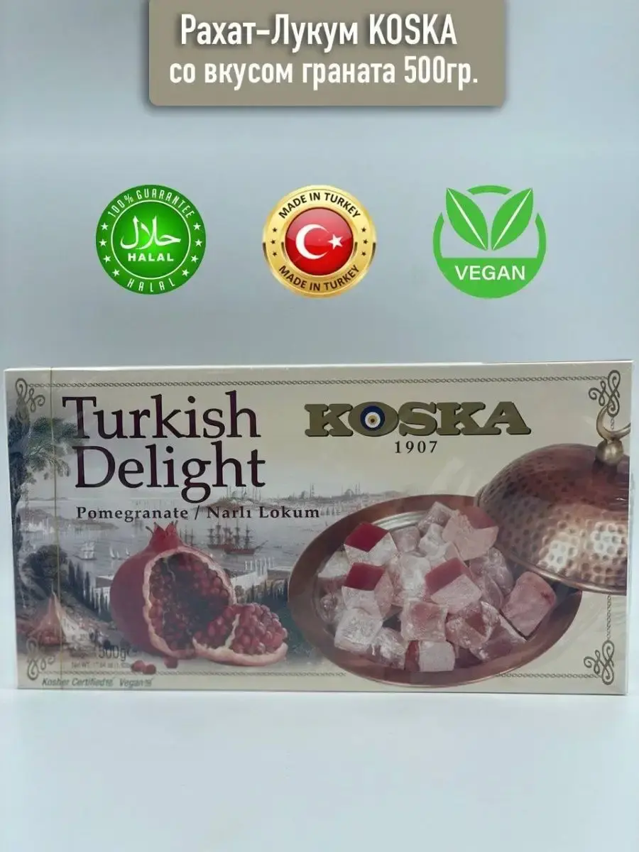 В данной карточке ,для Вашего удобства, представлены несколько видов натурального турецкого лукума.Сочетание нежного, тающего во рту турецкого рахат-лукума с разнообразными фруктовыми соками или орешками (фундук или фисташки) понравится всем любителям восточных десертов и сладостей.Восточные сладости от крупнейшего и известнейшего производителя Турции марки Koska порадуют Вас своим натуральным составом, приверженностью традициям и ингредиентами высочайшего качества.В их составе нет искусственных добавок и консервантов.