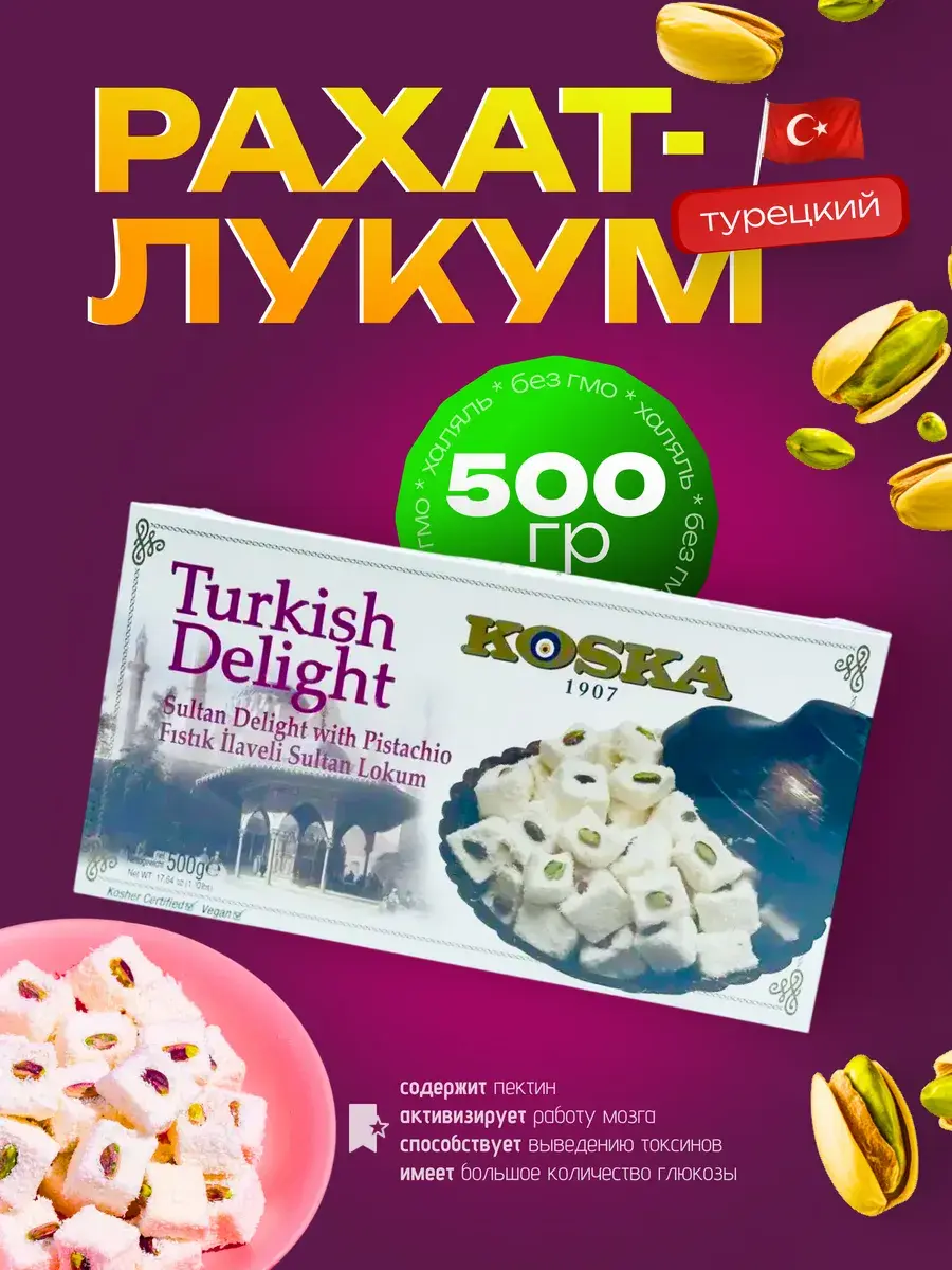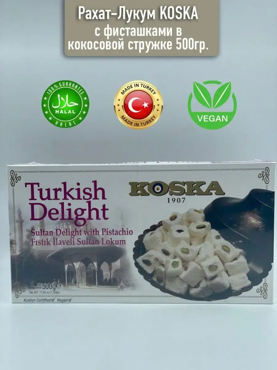 В данной карточке ,для Вашего удобства, представлены несколько видов натурального турецкого лукума.Сочетание нежного, тающего во рту турецкого рахат-лукума с разнообразными фруктовыми соками или орешками (фундук или фисташки) понравится всем любителям восточных десертов и сладостей.Восточные сладости от крупнейшего и известнейшего производителя Турции марки Koska порадуют Вас своим натуральным составом, приверженностью традициям и ингредиентами высочайшего качества.В их составе нет искусственных добавок и консервантов.