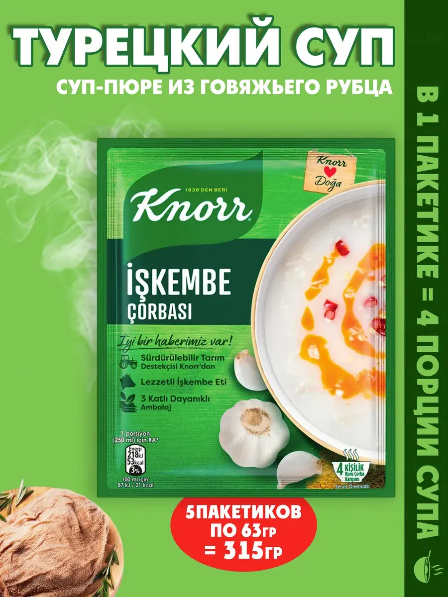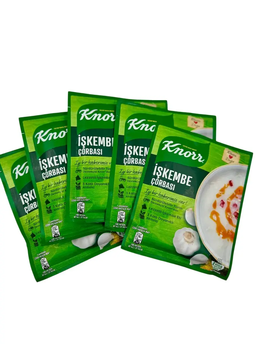 Традиционный турецкий Суп-пюре из говяжьего рубца Iskembe corbasi от крупнейшего производителя "Knorr". Обладает легким и при этом насыщенным вкусом а так же приятным пряным ароматом. Этот суп быстрого приготовления позволит вам насладится популярным блюдом турецкой кухни Традиционное блюдо турецкой кухни обычно готовят из овечьего или говяжьего рубца и едят с уксусно-чесночным соусом или с добавлением яично-лимонного соуса тербие (terbiye). В Турции он считается национальным блюдом.