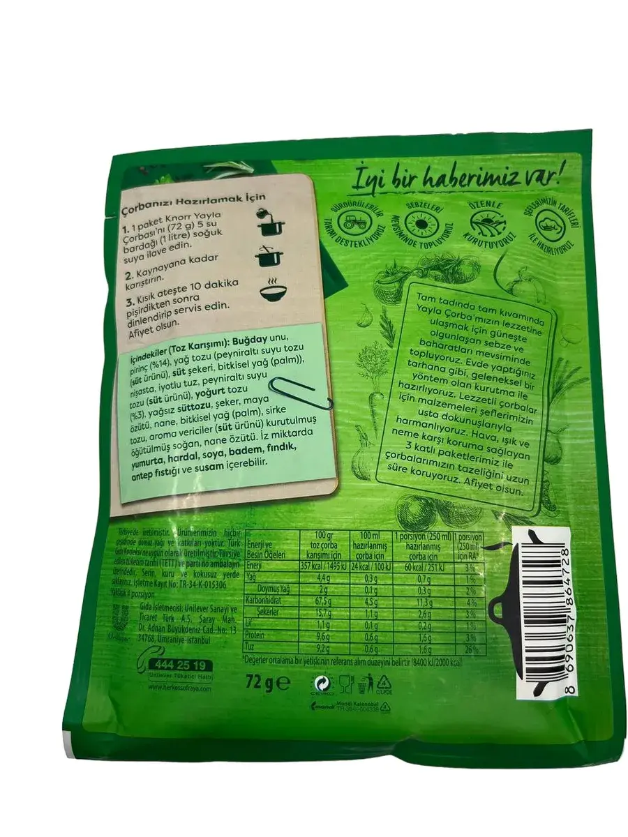 Итак, если вы ищете что-то новое и интересное для своего ежедневного рациона, турецкий суп-пюре яйла быстрого приготовления от Knorr станет для вас отличным выбором. Позвольте себе насладиться настоящей турецкой кухней, не выходя из дома. Закажите сейчас и откройте для себя новый уровень вкусовых ощущений.