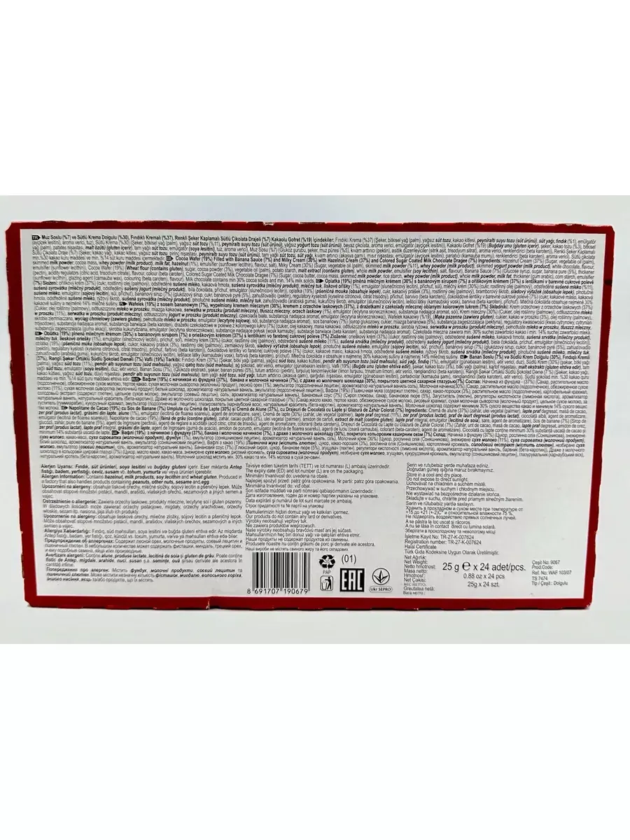 Погрузитесь в мир нежных наслаждений с каждым укусом вафельных трубочек, наполненных богатым шоколадно-банановым кремом и разноцветным драже. Эта восхитительная турецкая сладость вдохновляет своим завораживающим сочетанием вкуса вафель и молочного шоколада, сливаясь с нежным фундучным ароматом и сладкой сладостью банана. К тому же, хрустящая трубочка добавляет неповторимый шарм каждому кусочку.