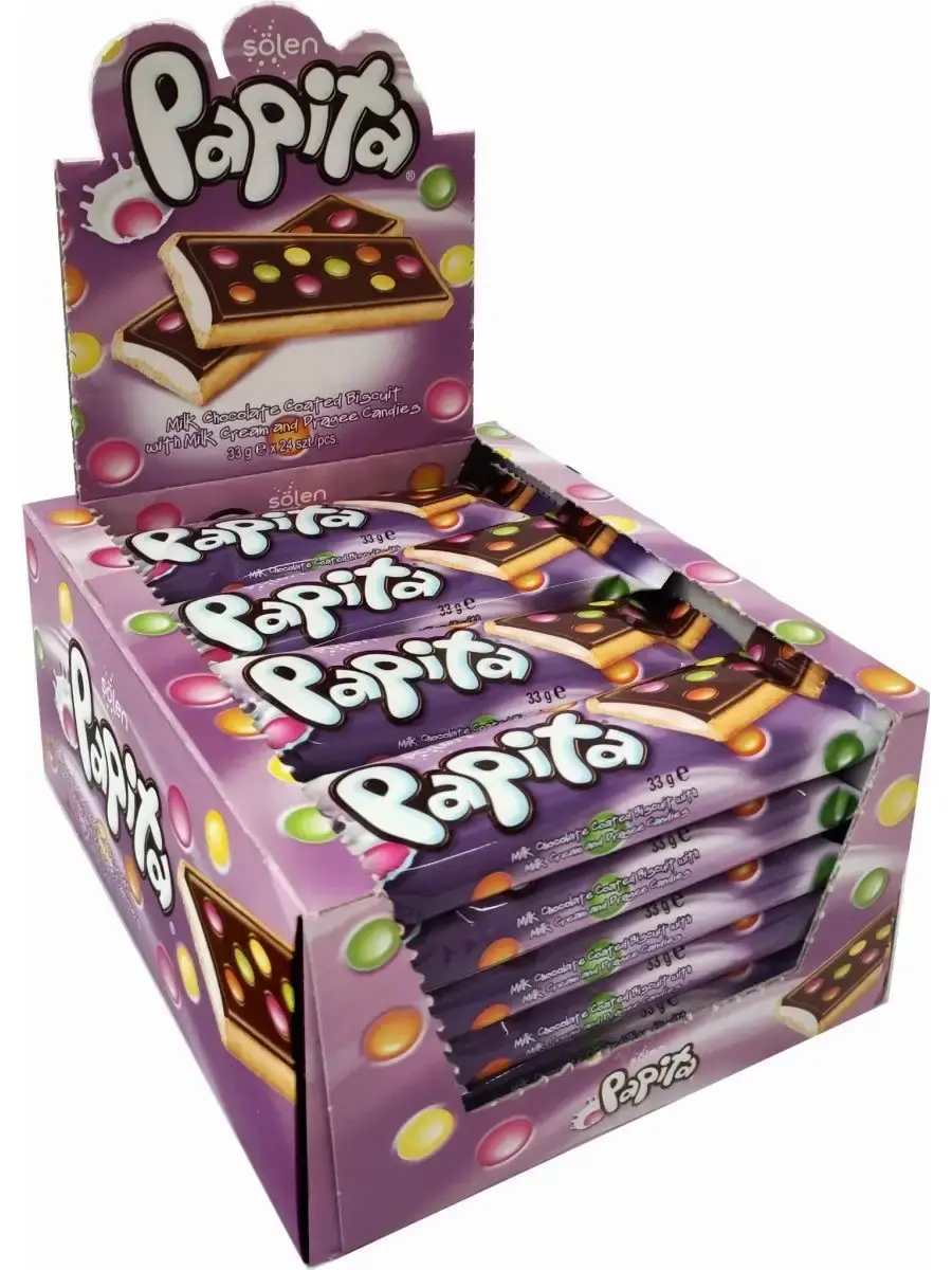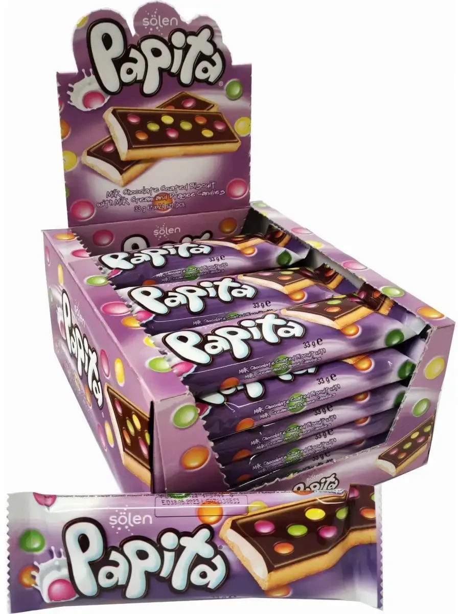 Попробуйте нежное и ароматное печенье Papita с молочным шоколадом и многообразной начинкой! Это любимое лакомство для взрослых и школьников. Каждое печенье упаковано в индивидуальную красочную упаковку, что делает его идеальным перекусом в дороге, в школе или на работе.
