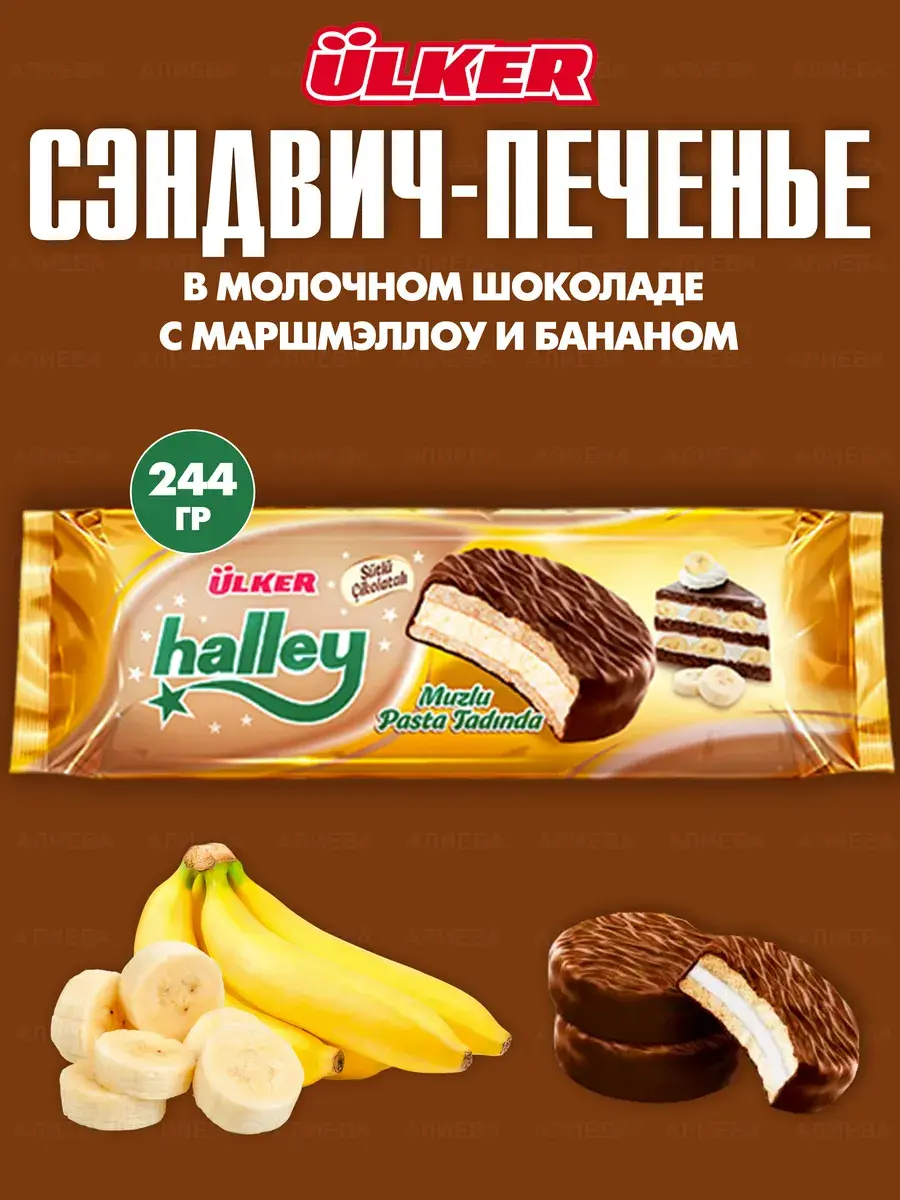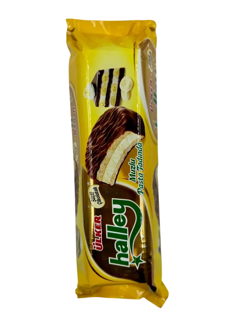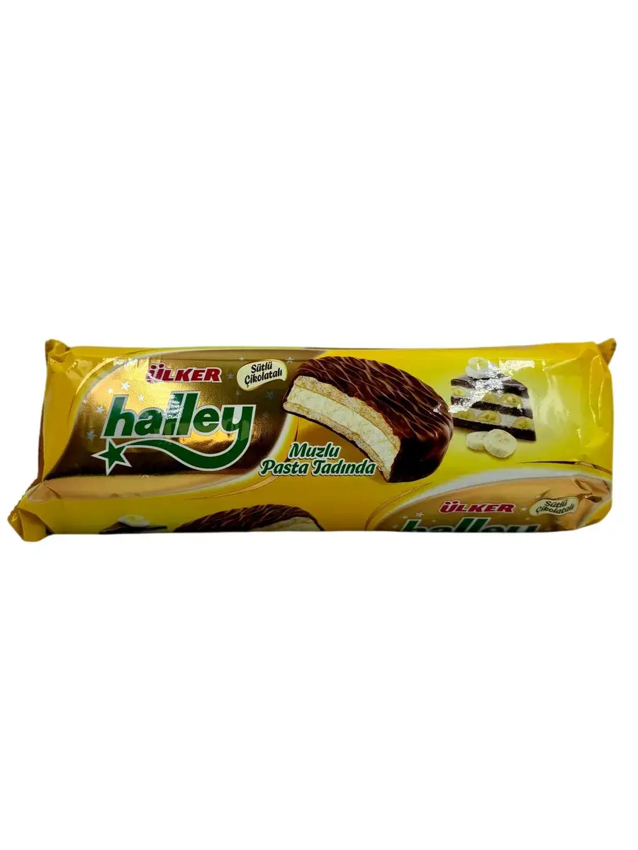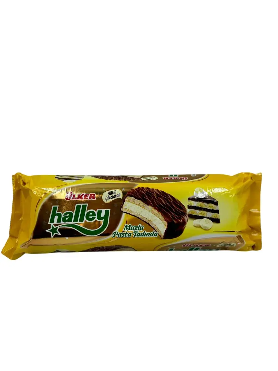 ULKER Halley Chocolate Cookies Печенье в молочном шоколаде с бананом, 224гр.