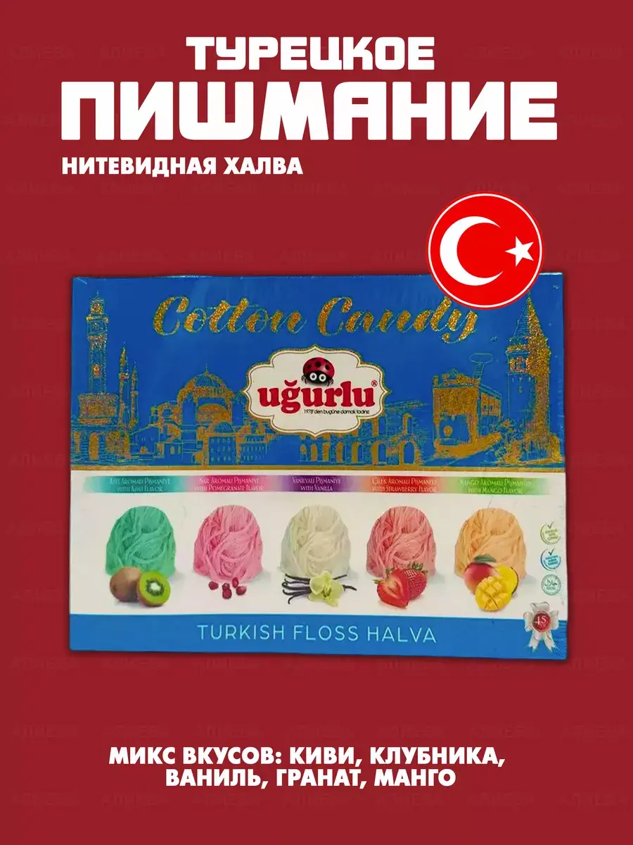 Пишмание — турецкая сладость, которая готовится на основе сахарного сиропа и обжаренной муки. И напоминает по вкусу, нежную халву или сахарную вату. Двойной вкус пишмание повышающий настроение с добавлением киви,манго,ванили и ягод-клубники,граната тает во рту.Попробуйте и порадуйте любимых сладостями или захватите турецкие угощение в гости! Перенеситесь в атмосферу и колорит восточных мотивов .