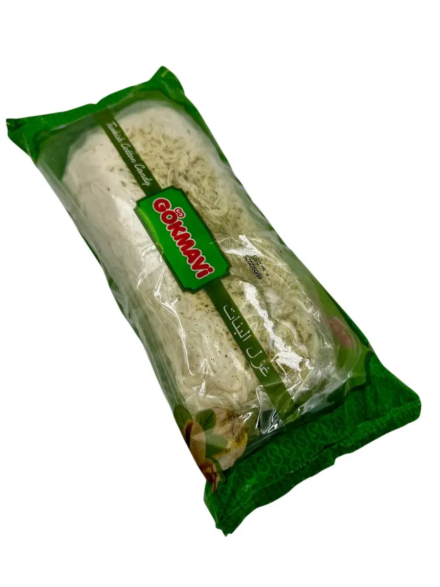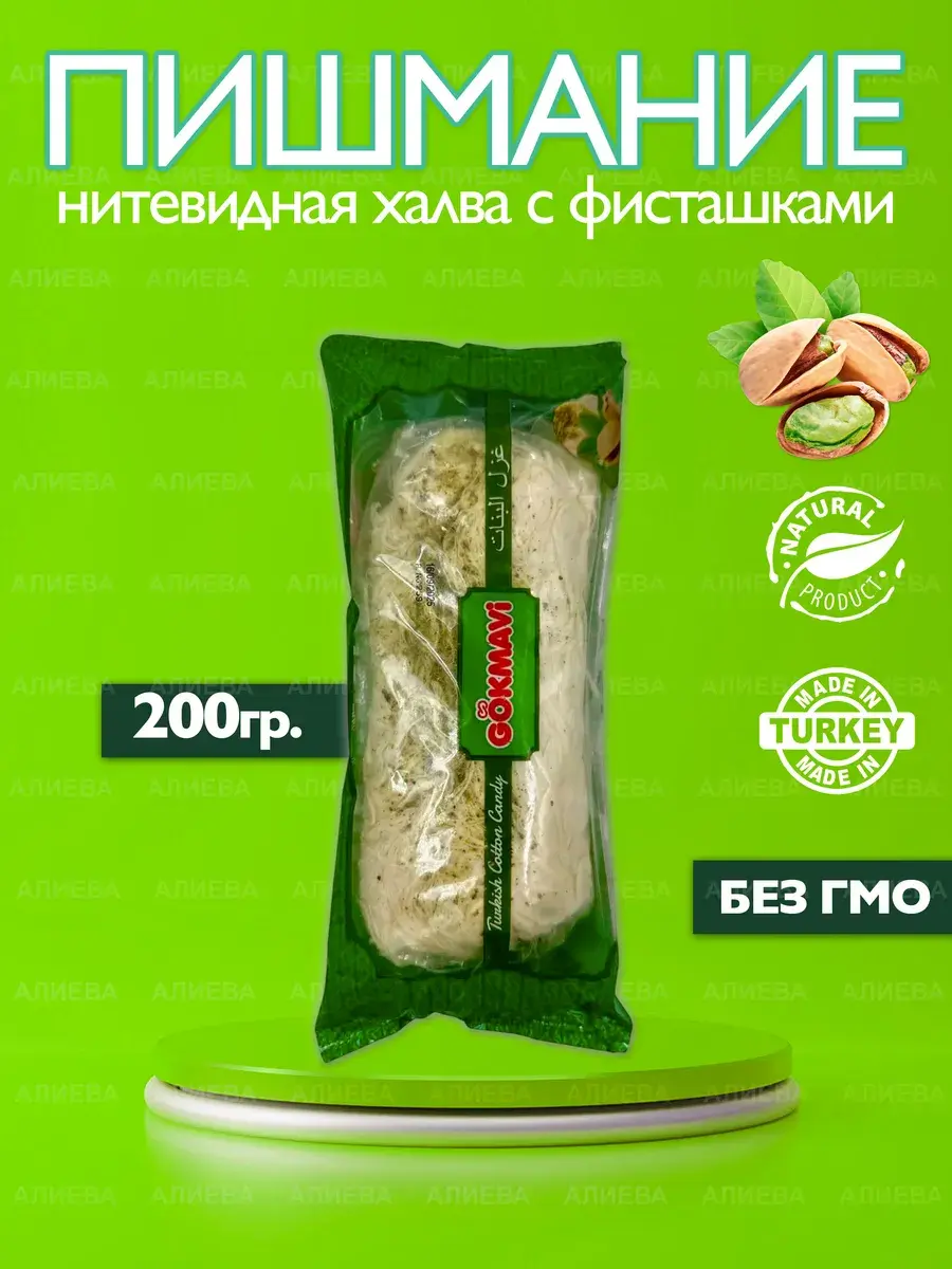 Ищите подарок для сладкоежки? Мы его нашли! Пишмание, или турецкая халва пользуется популярностью не только на Востоке, но и во всем мире. Этот постный продукт отличается необычным вкусом и сладостью. По своей воздушной консистенции пишмание напоминает любимую с детства сладкую вату. Однако в отличие от обычной сладкой ваты, эту восточную сладость делают из муки и сахара, формируя из ингредиентов тончайшие воздушные нити. Затем в этот турецкий продукт добавляют фисташки, которые придают ореховый вкус и аромат. Хлопковая халва пашмак является визитной карточкой Турции. Этот десерт мгновенно тает во рту, за что особо любим детьми. Данная халва представляет собой цельное облако пишмание с фисташками. Пластиковая упаковка позволяет дольше сохранить вкус и воздушность турецкой ваты пишмание. Турецкое пишмание Gokmavi известен во всем мире своим отменным вкусом, натуральным составом и высочайшим качеством.