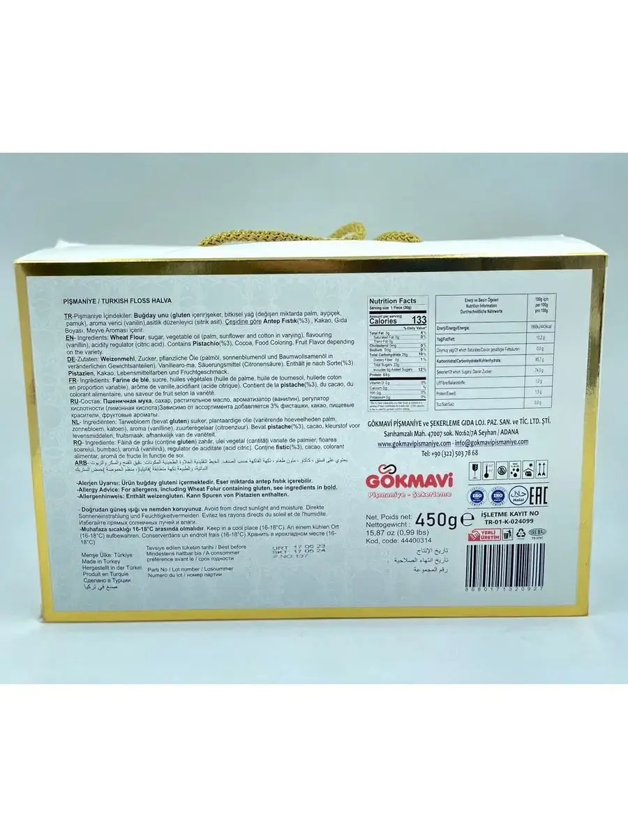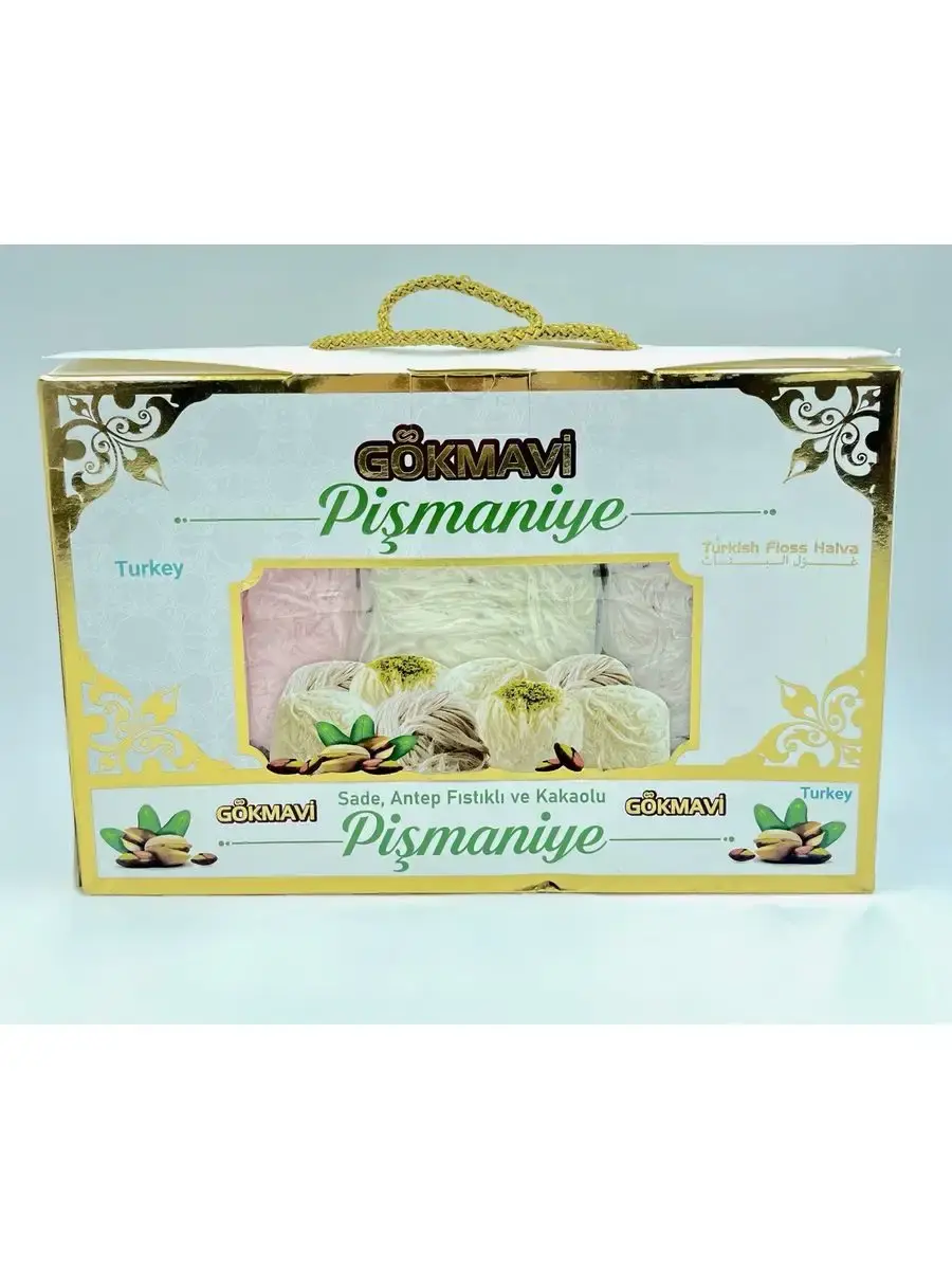 Пишмание-одна из самых знаменитых турецких сладостей, наряду с лукумом и пахлавой. Тонкая "лапша" буквально тает во рту. Пишмание похожа на смесь сахарной ваты и халвы. Высокое кулинарное искусство в сочетании с современным оборудованием и ручной работой мастеров делают этот продукт уникальным по своему вкусу и внешнему виду. В отличие от обычной сладкой ваты, пишмание делают из муки и сахара, формируя из ингредиентов тончайшие воздушные нити.Данное пишмание упаковано в подарочную упаковку , в подарочный пакет . Идеально подойдет для подарка .