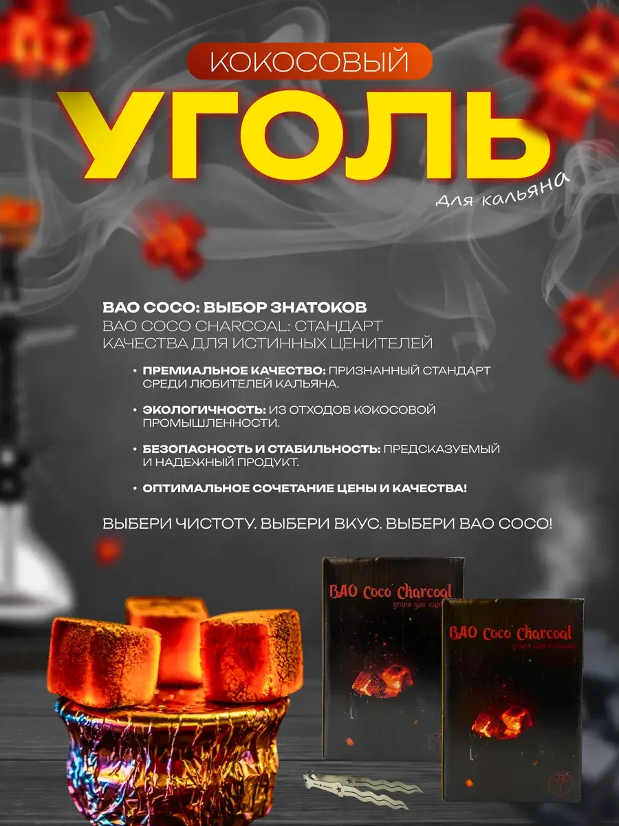 Мы гордимся тем, что наш продукт проходит строгий контроль качества и соответствует всем стандартам безопасности. Кокосовый уголь экологически чистый, не содержит химических добавок и абсолютно безопасен для здоровья. Он быстро разжигается, оставляет минимум пепла и значительно упрощает уборку после использования.