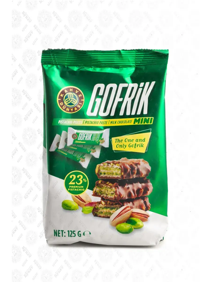 Gofrik – это легкий вафельный батончик, каждая порция которого дарит необычное сочетание вкусов и текстур: тающий молочный шоколад, легкая хрустящая вафля и нежная фисташковая начинка, которые таят во рту.