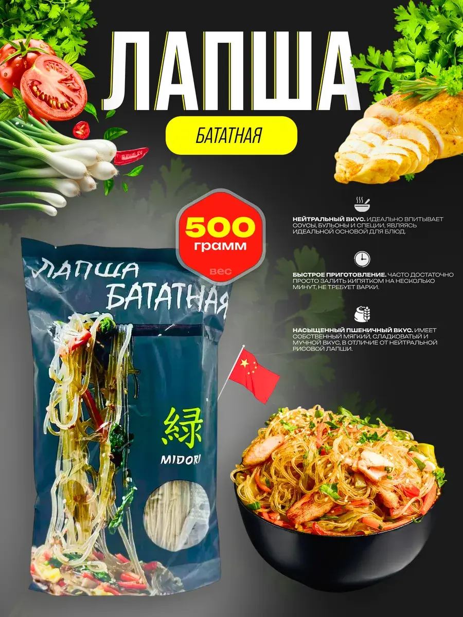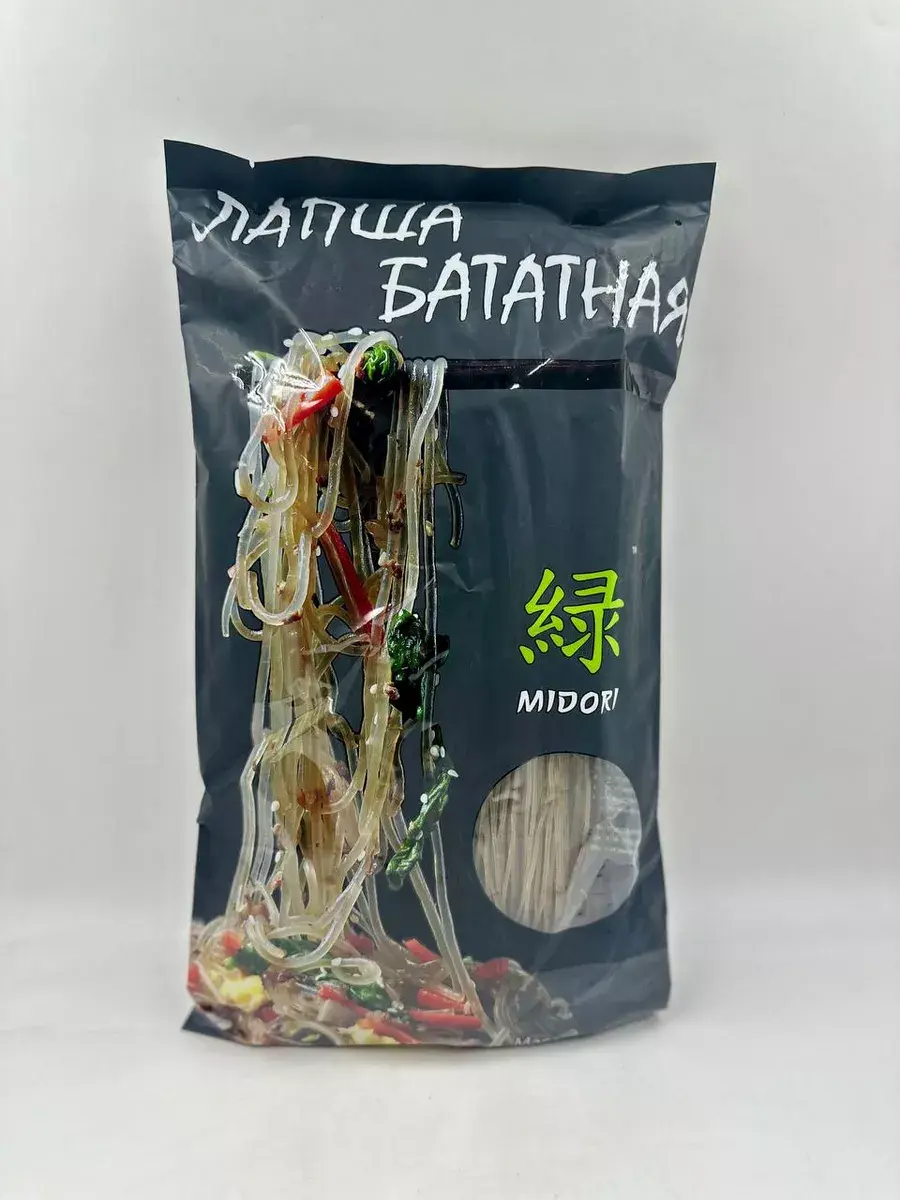 Вермишель из батата произведена в Китае. Она подходит для ряда блюд, например фунчозы или чапче, а еще можно придумать свой собственный, уникальный рецепт лапши. «Стеклянная» прозрачная лапша имеет твердую, но гладкую текстуру и сладкий бататовый вкус.