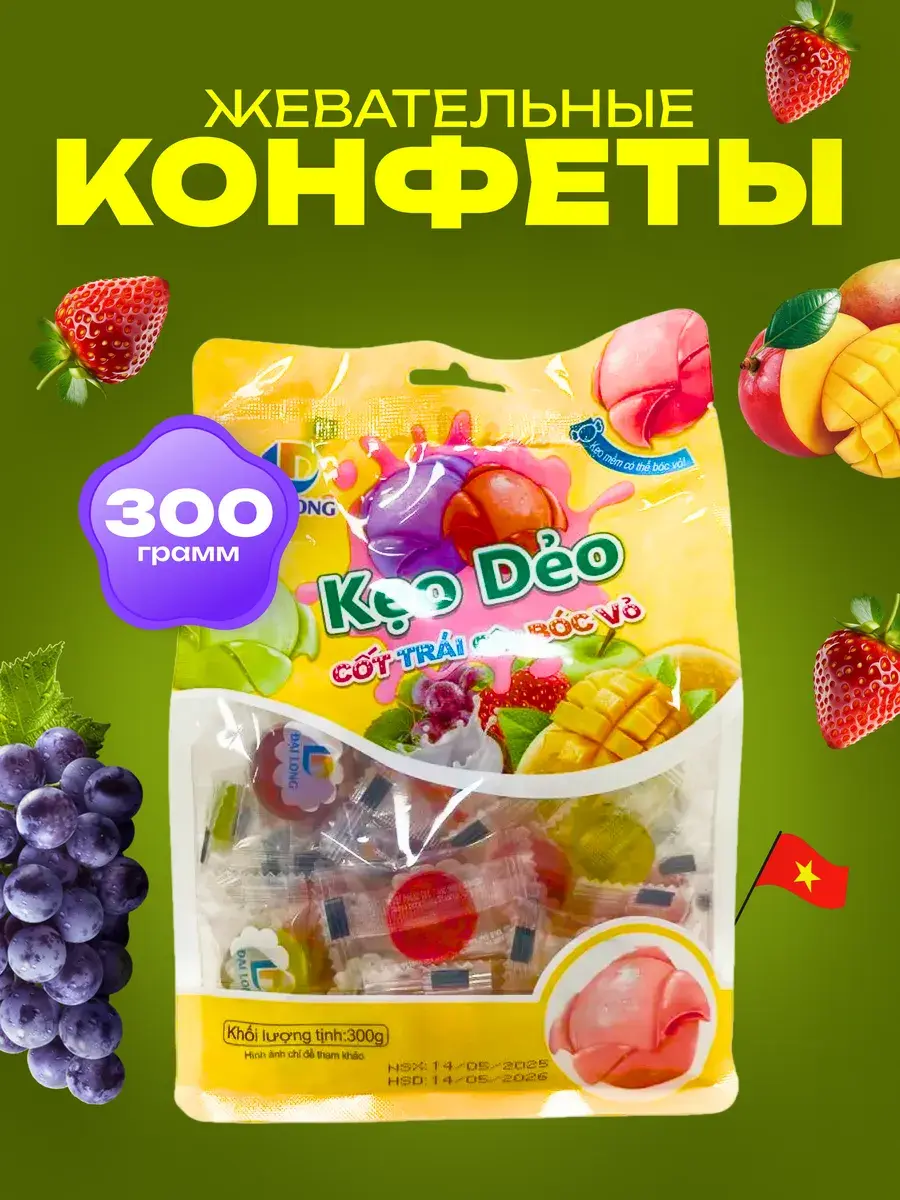 Важно, что, несмотря на всю свою привлекательность и яркость вкусов, эти желейные конфеты производятся с соблюдением всех современных стандартов безопасности и качества. При их создании используются проверенные технологии, которые гарантируют чистоту продукта и сохранность его вкусовых качеств, поэтому вы можете наслаждаться ими без лишних забот. Удобство и гигиеничность конфетам придает индивидуальная упаковка каждой штучки. Это практичное решение позволяет всегда иметь под рукой порционное лакомство, будь то длительная поездка, перерыв на работе, прогулка в парке или просто момент, когда хочется порадовать себя чем-то вкусным. Вьетнамские желейные конфеты – это универсальное лакомство, которое поднимает настроение и дарит незабываемые вкусовые впечатления в любой обстановке.
