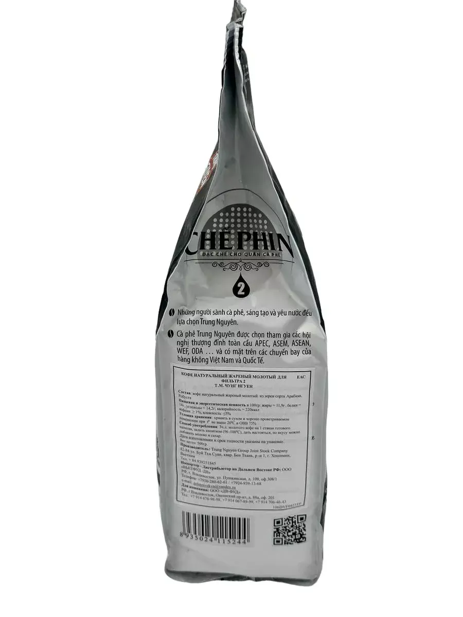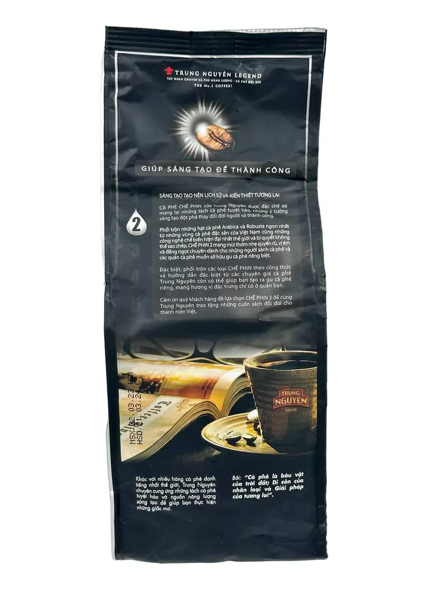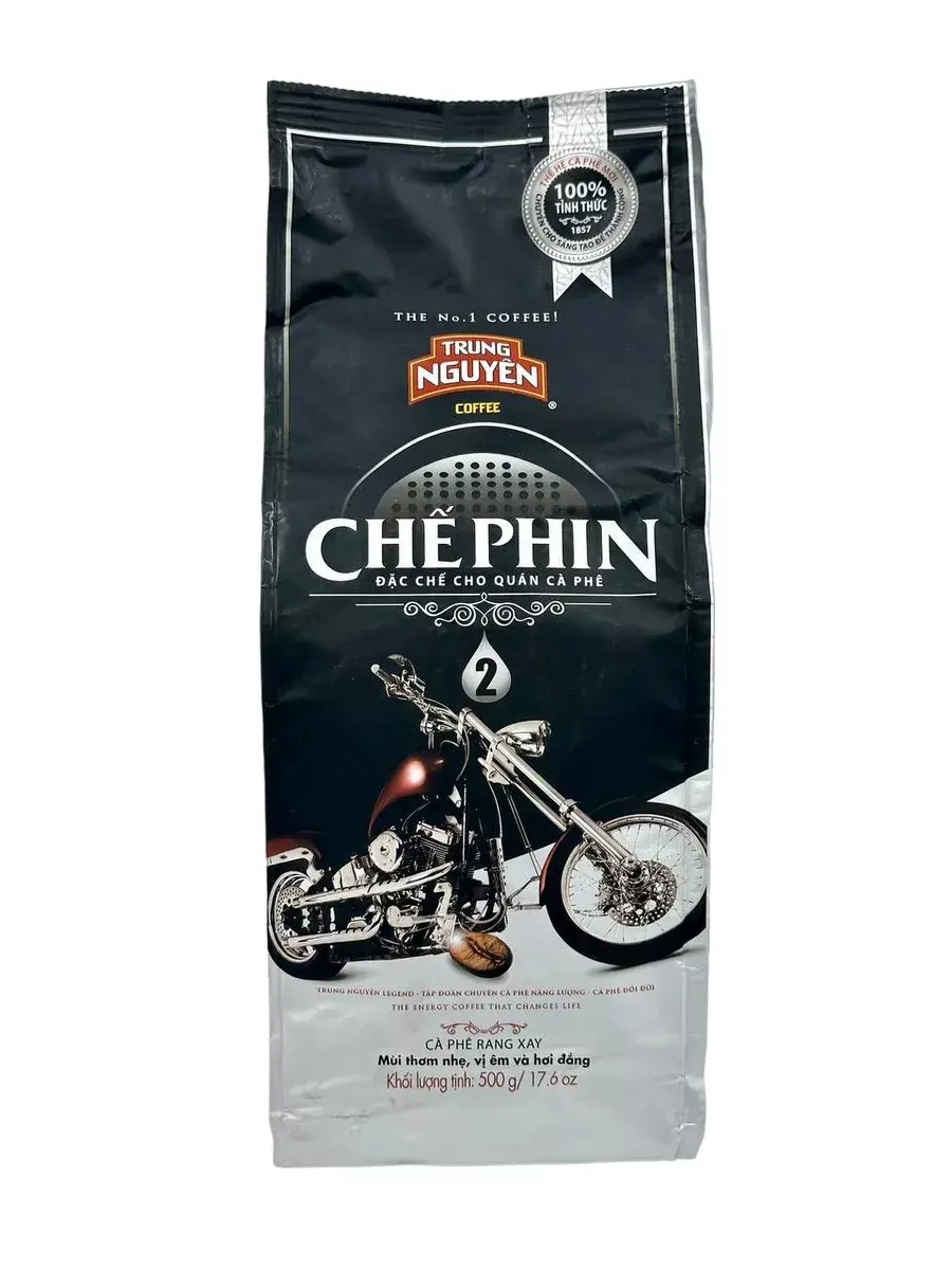 Вьетнамский молотый кофе Trung Nguyen Che Phin 2 — это уникальный вьетнамский кофе Trung Nguyen, сочетающий в себе отборные зёрна Арабики и Робусты. Такая смесь наиболее популярна из-за крепости, которой характерна Робуста, и ароматного вкуса Арабики. Вьетнамский кофе Trung Nguyen Che Phin 2 относится к премиальной линейке молотого кофе Trung Nguyen. Напиток обладает довольно высоким содержанием кофеина (около 2%) и отлично сбалансированным сладковатым вкусом с оттенком карамели. Во вкусе есть горчинка. Такой молотый кофе можно употреблять как горячим, так и холодным, или с любыми добавками по вашему выбору. Идеален для заваривания в специальном вьетнамском кофейном пресс-фильтре (фине).