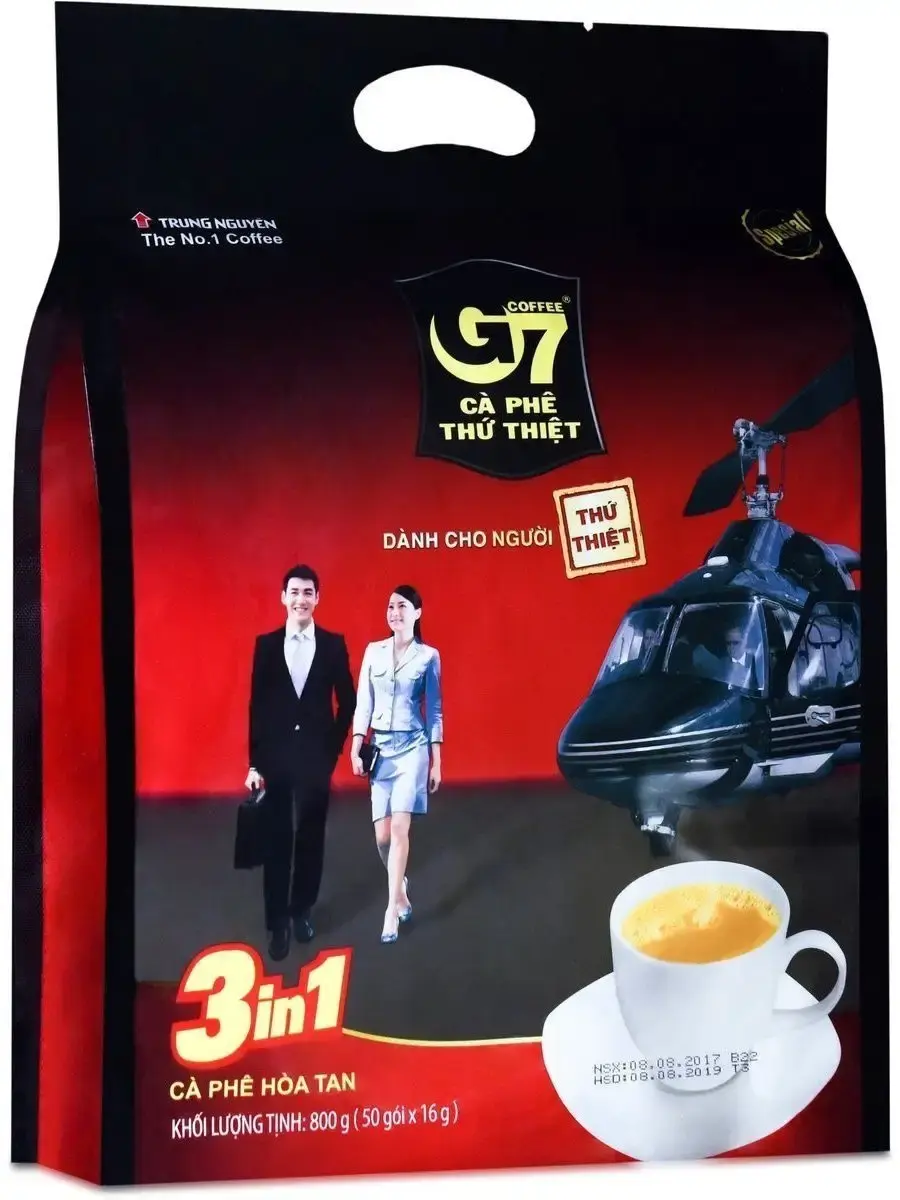 Провозглашенный ценителями кофе во всем мире, как их любимый напиток, растворимый кофе Trung Nguyen G7 3 в 1 создан путем комбинирования передовых европейских технологий с опытом и знаниями Trung Nguyen. В этом кофе используются только отборные кофейные зерна из Буонметхуот, легендарного базальтового нагорья Вьетнама, именно поэтому у Trung Nguyen G7 уникально восхитительный аромат и исключительно превосходный вкус.В обширном перечне растворимого кофе G7, данная позиция является самым ярким представителем классического вьетнамского растворимого кофе. Входящие в состав растительные сливки гипоаллергенны и могут быть рекомендованы людям с нарушениями имунной системы. Оригинальный (Original) кофе, произведенный для внутреннего рынка Вьетнама и знакомый многим тем, кто побывал во Вьетнаме и прочувствовал все райские моменты своего путешествия.