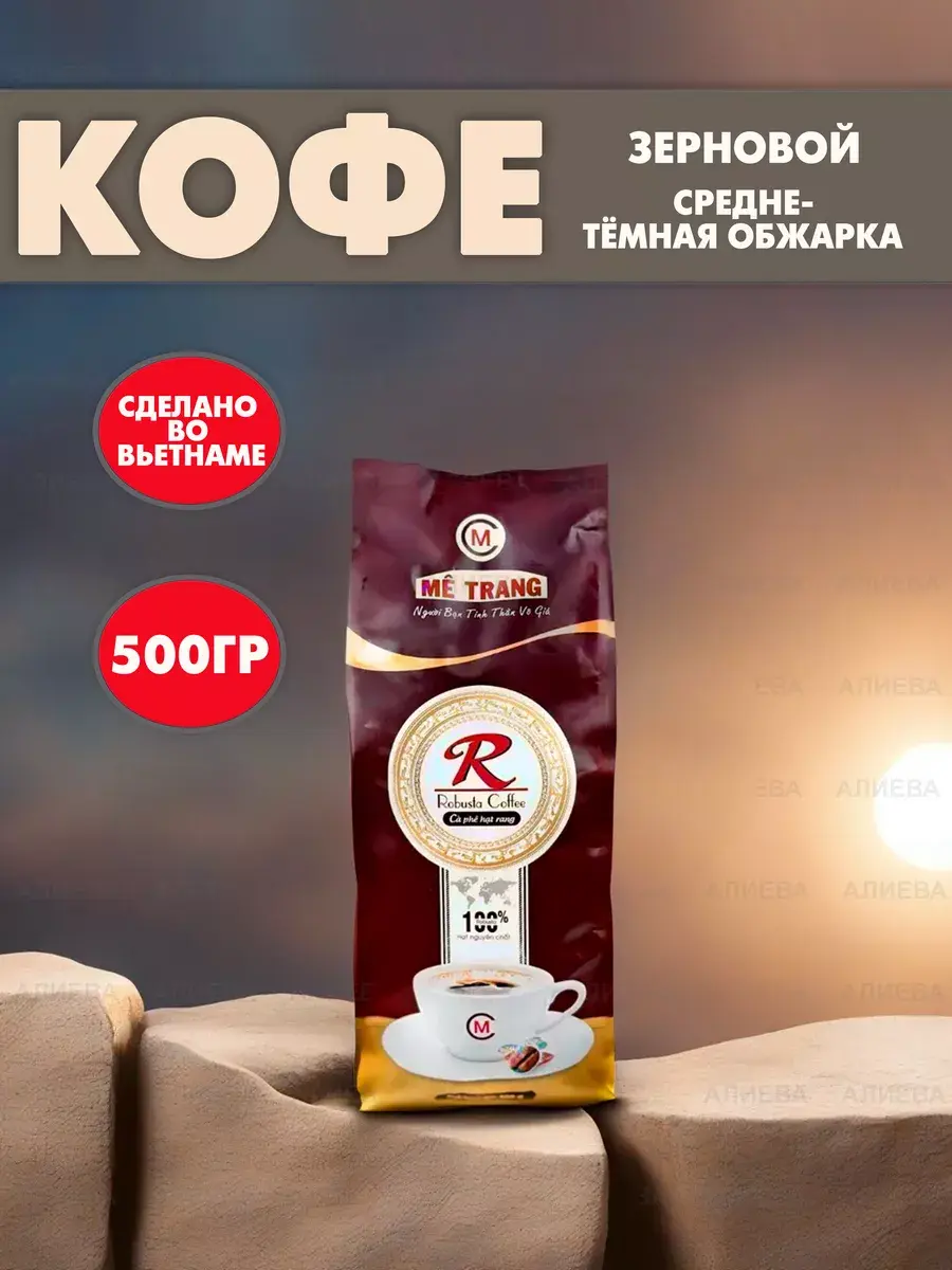 Представляем вам воплощение силы и насыщенности в каждой чашке — зерновой кофе Me Trang Robusta. Упаковка 500 грамм абсолютной энергии, созданной из 100% вьетнамской робусты.