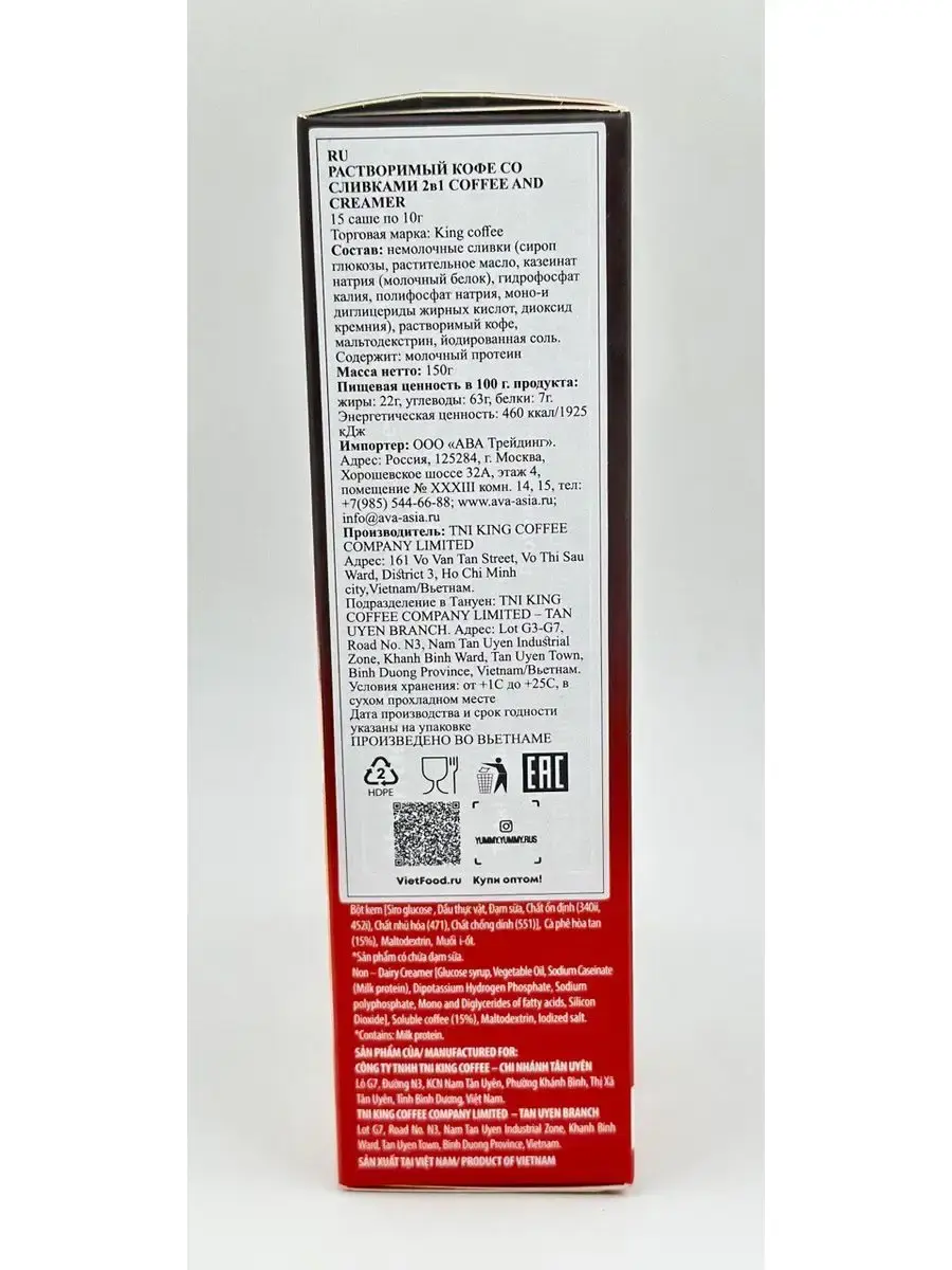 Откройте для себя новую эру кофейного удовольствия с "King Coffee" 2 в 1 с немолочными сливками. Наслаждайтесь каждой чашкой и чувствуйте себя здоровым и бодрым вместе с нашим вьетнамским кофе!