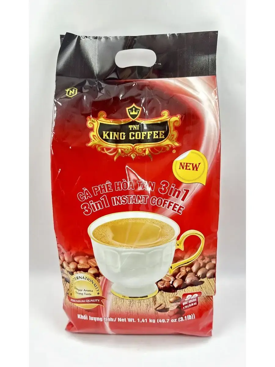 Для настоящих ценителей кофе, King Coffee станет вашим надежным спутником на пути к ярким и успешным моментам жизни. Растворимый кофе 3 в 1 от King Coffee - это не просто кофе, это настоящее искусство наслаждения!