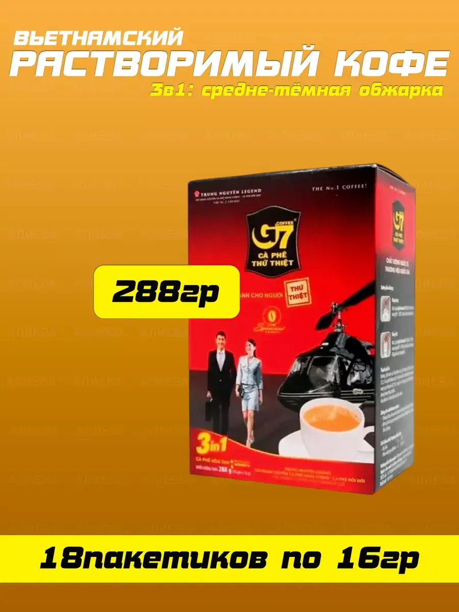 Провозглашенный ценителями кофе во всем мире, как их любимый напиток, растворимый кофе Trung Nguyen G7 3 в 1 создан путем комбинирования передовых европейских технологий с опытом и знаниями Trung Nguyen. В этом кофе используются только отборные кофейные зерна из Буонметхуот, легендарного базальтового нагорья Вьетнама, именно поэтому у Trung Nguyen G7 уникально восхитительный аромат и исключительно превосходный вкус.В обширном перечне растворимого кофе G7, данная позиция является самым ярким представителем классического вьетнамского растворимого кофе. Входящие в состав растительные сливки гипоаллергенны и могут быть рекомендованы людям с нарушениями имунной системы. Оригинальный (Original) кофе, произведенный для внутреннего рынка Вьетнама и знакомый многим тем, кто побывал во Вьетнаме и прочувствовал все райские моменты своего путешествия.